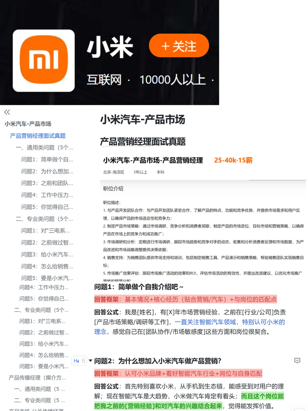Una整理了小米、小鹏、比亚迪、理想、蔚来等各大车企的营销岗位和面试真题!