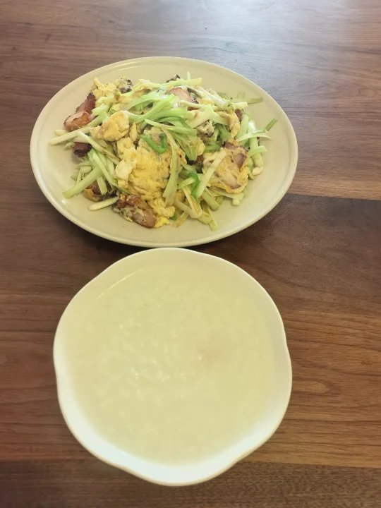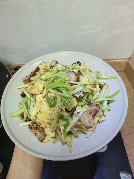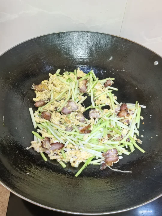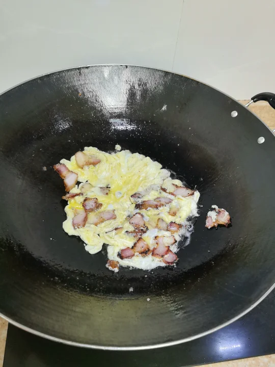 坚持早起做饭的工作日 为了能快速吃上饭,一个菜里面有荤有素,只要几分钟就能搞定!味道还是一流那种精致糊弄菜。 叉烧我喜欢吃比较香一点的,用油煎香,再煎鸡蛋,鸡蛋会非常香。 做法: 起锅热油,加入少许盐、蒜蓉炒香,加入韭黄,快速翻炒,炒至韭黄有点变软,出一点水份立马装盘控干水份。 三个鸡蛋打入碗里,加入盐、白胡椒粉搅拌均匀。 重新起锅热油,把叉烧炒香,加入鸡蛋滑熟,再加入韭菜翻炒均匀,沿着锅边淋入少许薄盐酱油,翻炒均匀即可出锅。