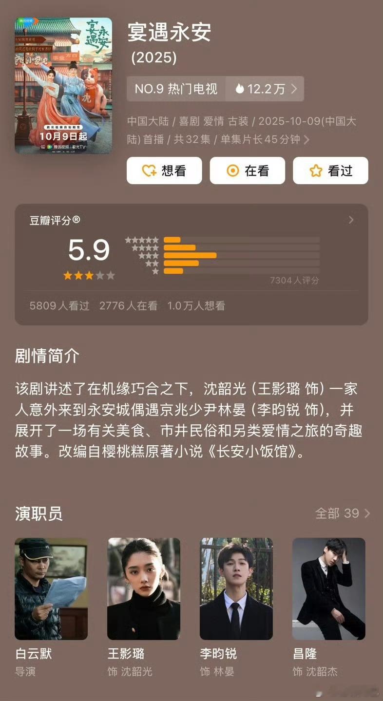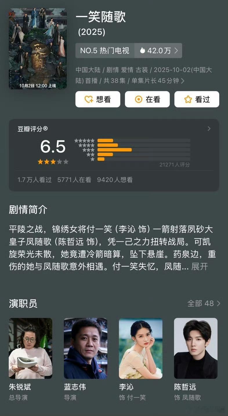 李沁陈哲远《一笑随歌》开分6.5分王影璐李昀锐《宴遇永安》开分5.9分