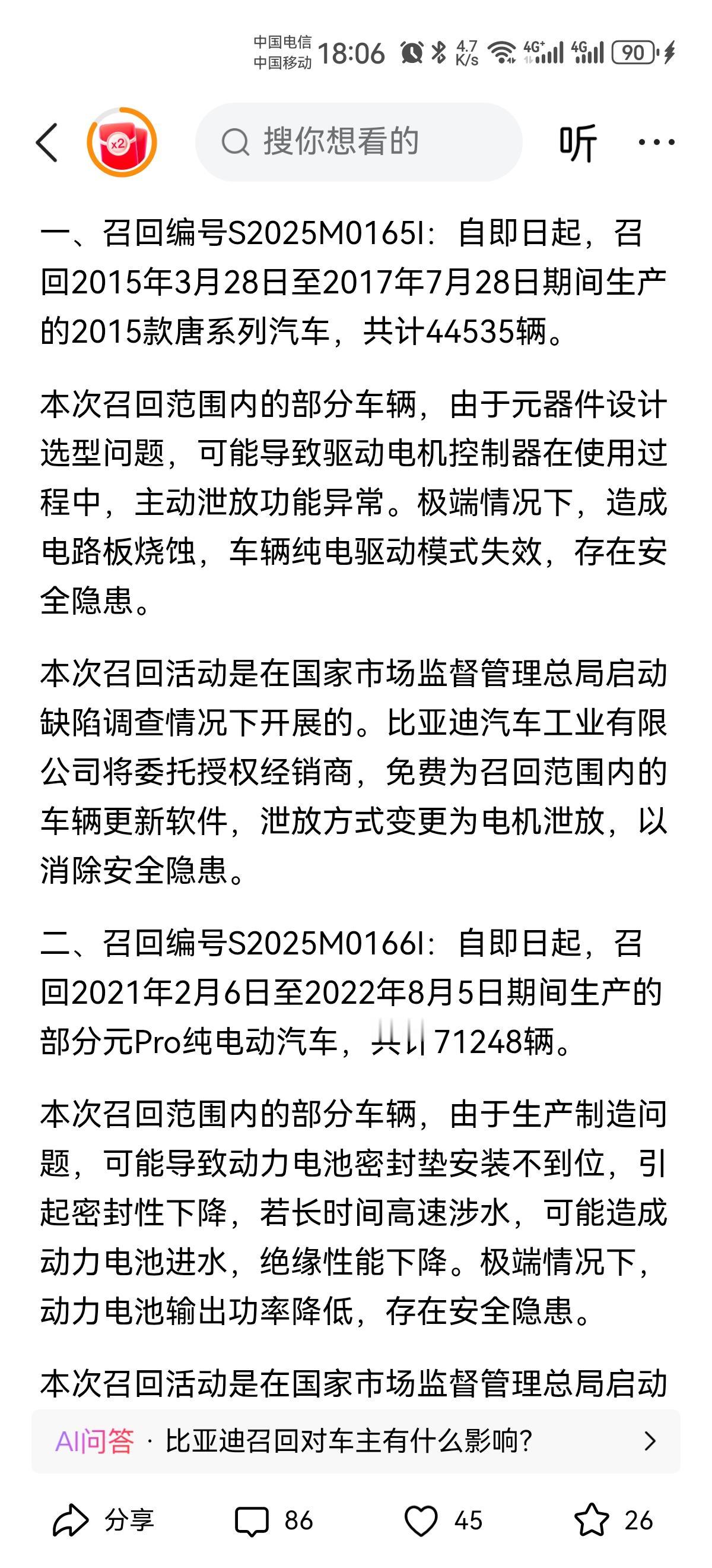 前有小米, 后有吉利, 再有比亚迪, 为车主负责的这种做法和精神值得点赞! 召回11万辆存在安全隐患的车,免费更新系统软件,消除所有安全隐患。这是对车主的负责,对车主安全的最大责任心。 希望所有车企,都把安全放在首位! 安全才是车的最大价值所在!