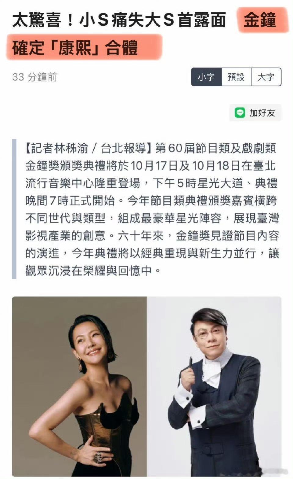 小S金钟奖希望小S能够带着姐姐的那一份好好的生活工作,她看起来状态还是很OK的