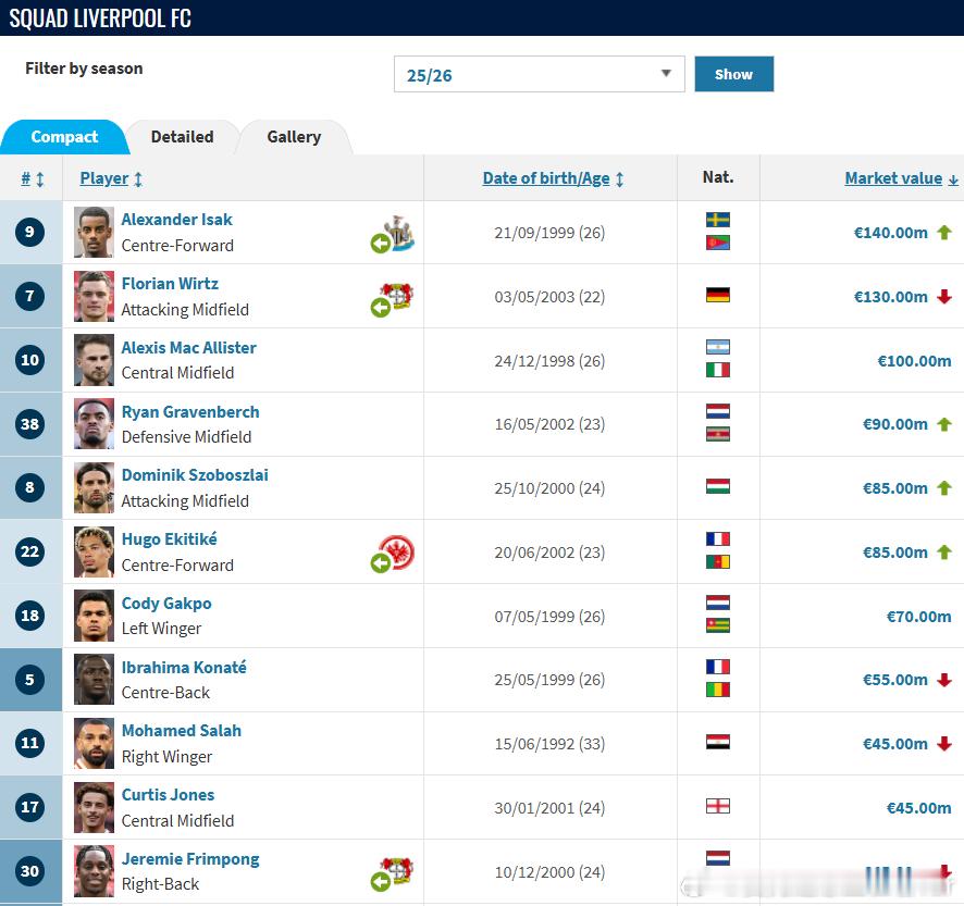 伊萨克身价上涨达到1.4亿,维尔茨下降至1.3亿
