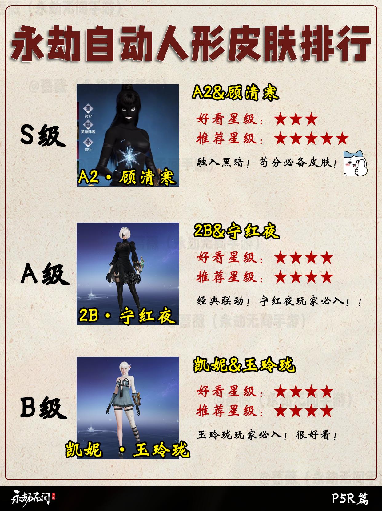 永劫自动人形皮肤排行。