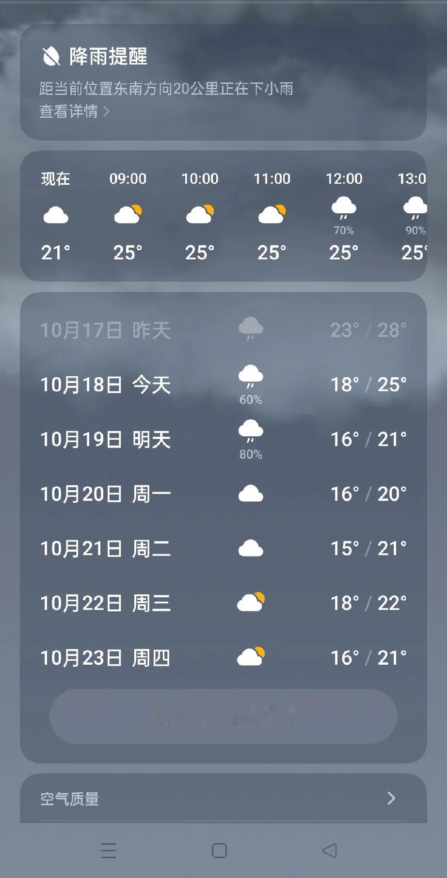 太好了!太好了! 一觉起来,神清气爽 昨天晚上还开了一夜空调 早晨起来一开窗 比房间里还凉快 上海天气终于迎来了2字开头 前天天气30度 给我热的中暑 我说农历九月了我中暑了 很多人反驳我 说我矫情 你是不知道那种气温看起来也不高 但是就是会中暑的感受 这下好了 估计空调不用开了