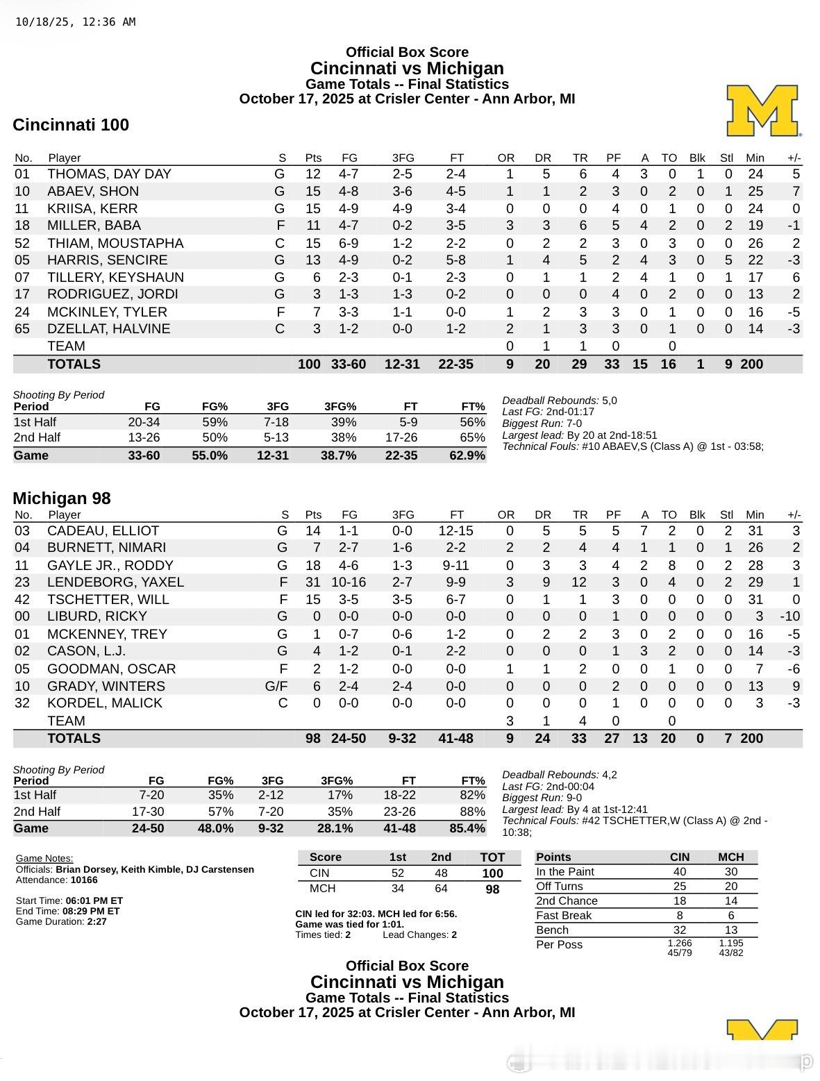 辛辛那提大学果然没让我失望!季前赛100比98击败全美第七的密西根大学,被外界严