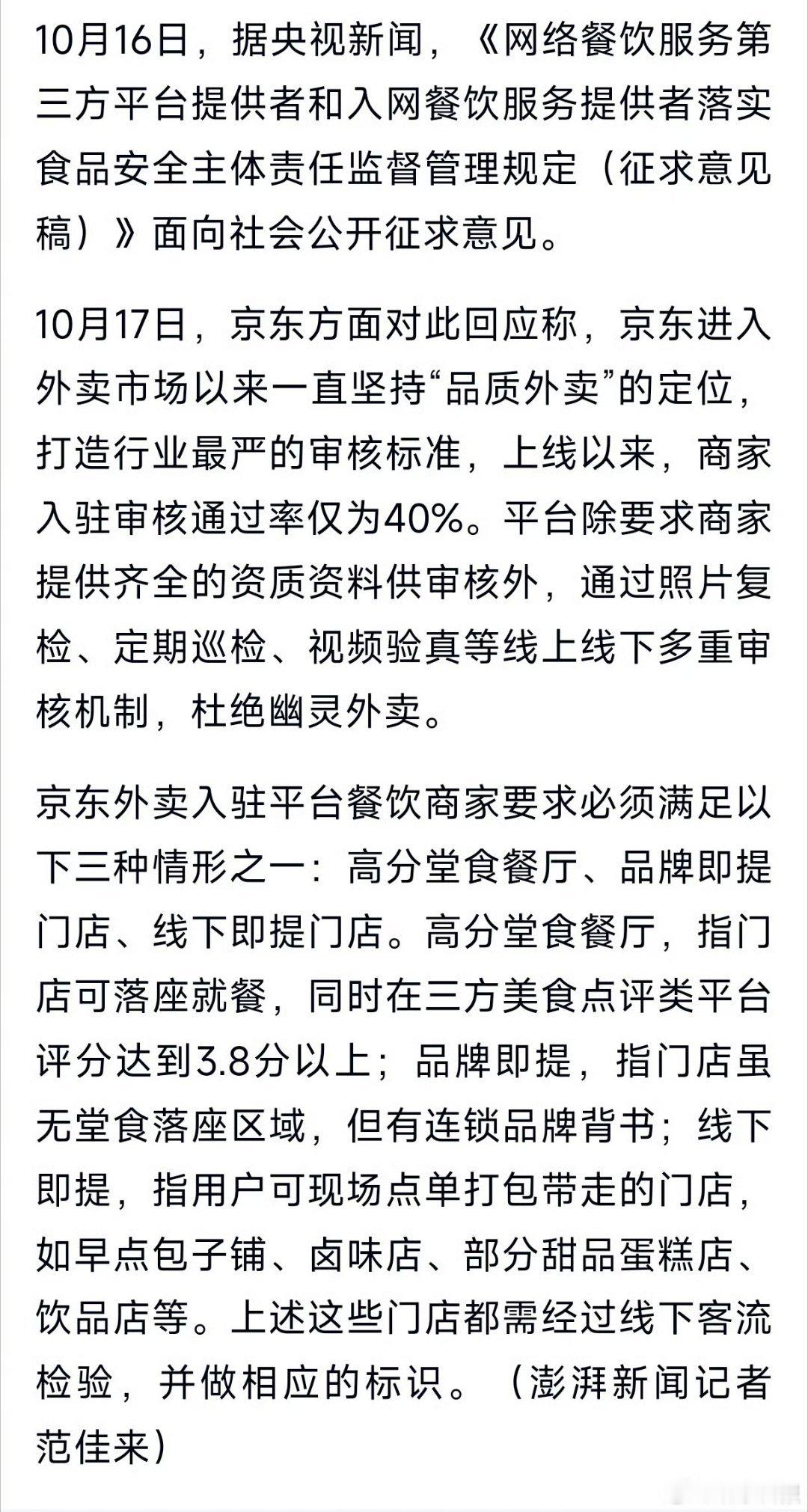京东率先回应市监总局外卖新规京.东外卖新规以"高分堂食+品牌背书+线下实体"三重