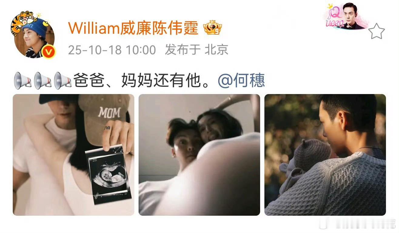 陈伟霆何穗官宣生子陈伟霆发博官宣,爸爸、妈妈还有他!好命哥搞好快[好喜欢]​