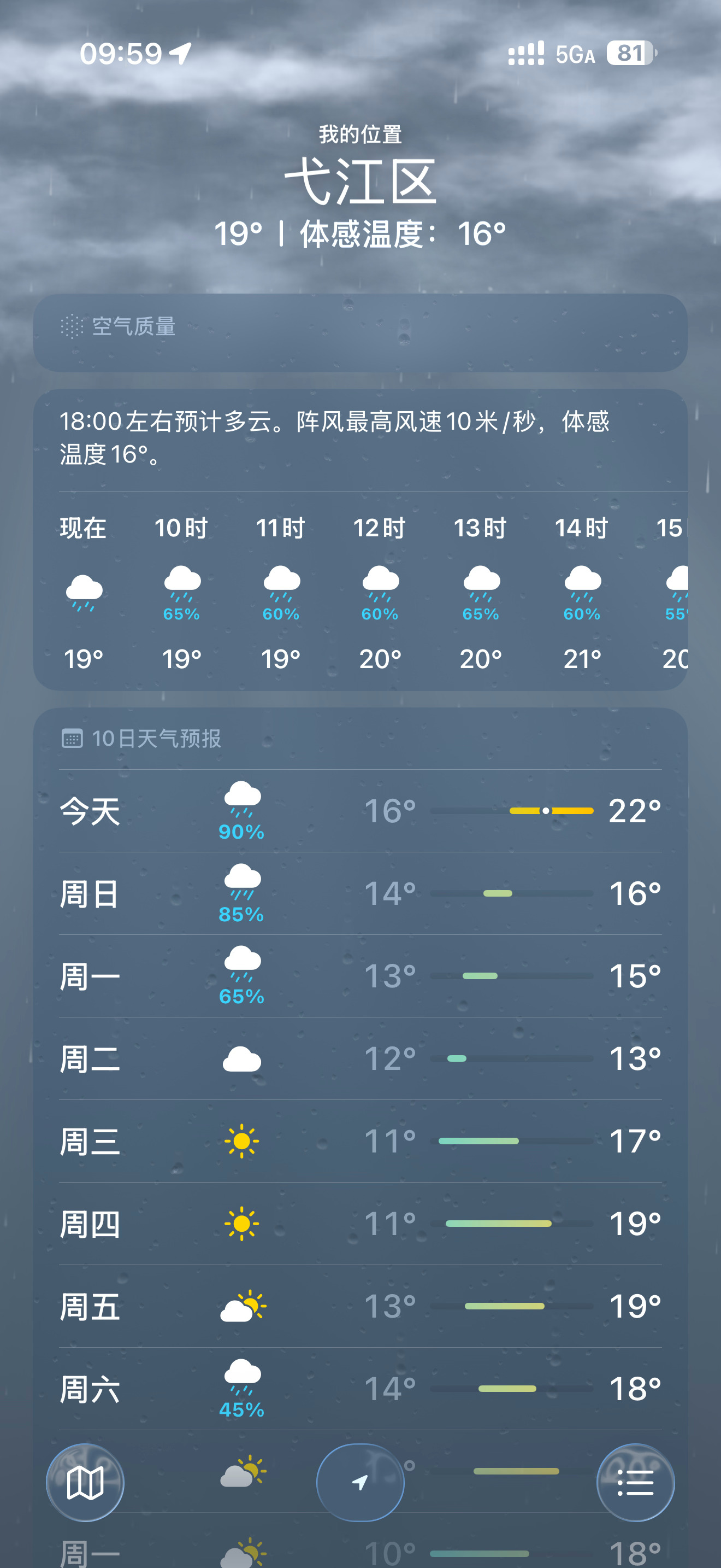 iPhone天气你可能真的不会用别的不说iphone的天气软件一直不怎么准,在温度和天气预测上和天气通差很多,我更习惯用天气通!冷不冷、下不下雨这个用起来更方便!
