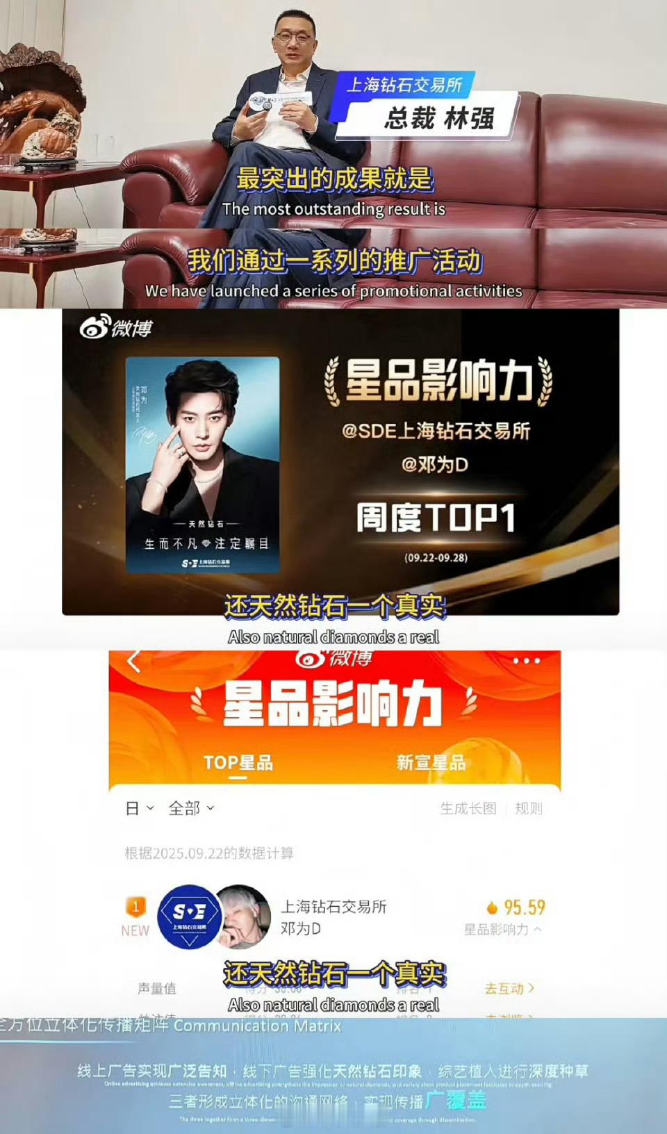 专访上海钻石交易所总裁林强:天然钻石代言人邓为一周销售额破3.68亿,真顶流商务水平了 ​​​