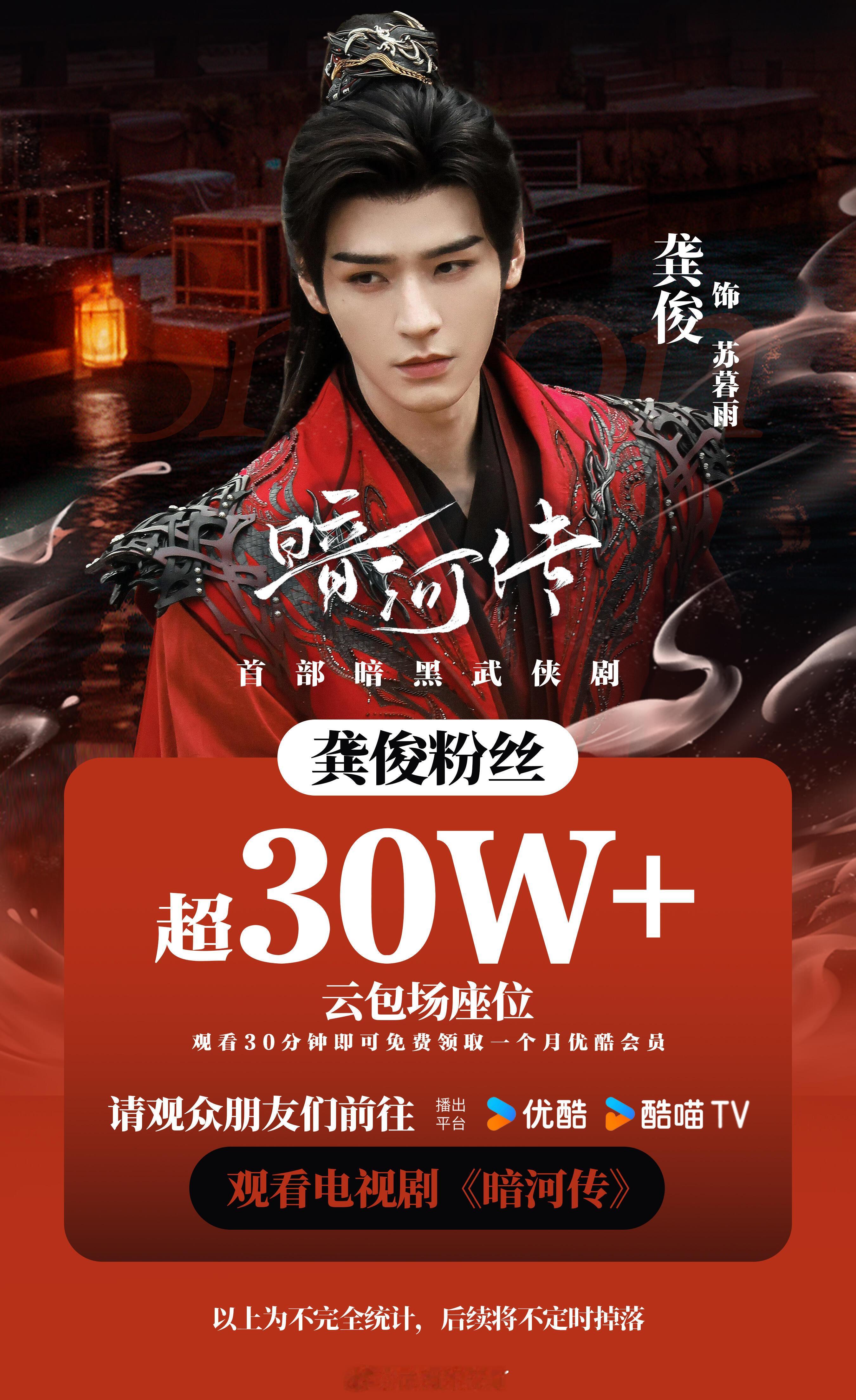 龚俊粉丝为《暗河传》开播准备了超30万座云包场[憧憬][憧憬]