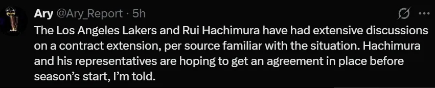美记Ary更新动态,谈到了湖人与八村垒的续约事宜: 据消息人士透露,洛杉矶湖人队和八村垒就续约事宜进行了深入讨论。据我所知,八村垒和他的经纪人希望在赛季开始前达成协议。 八村垒目前的合同还剩一年1826万美元。