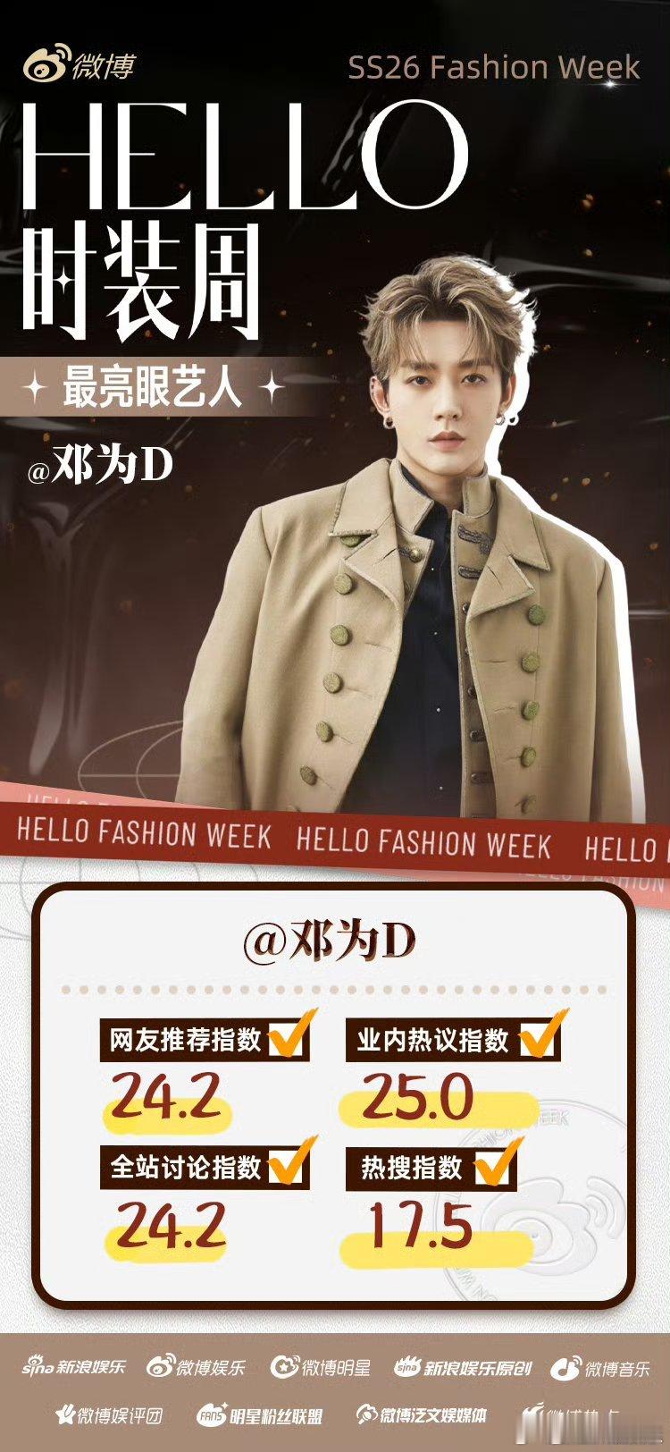 迪丽热巴、邓为、鞠婧祎时装周最亮眼艺人前三!恭喜🎉帅哥美女