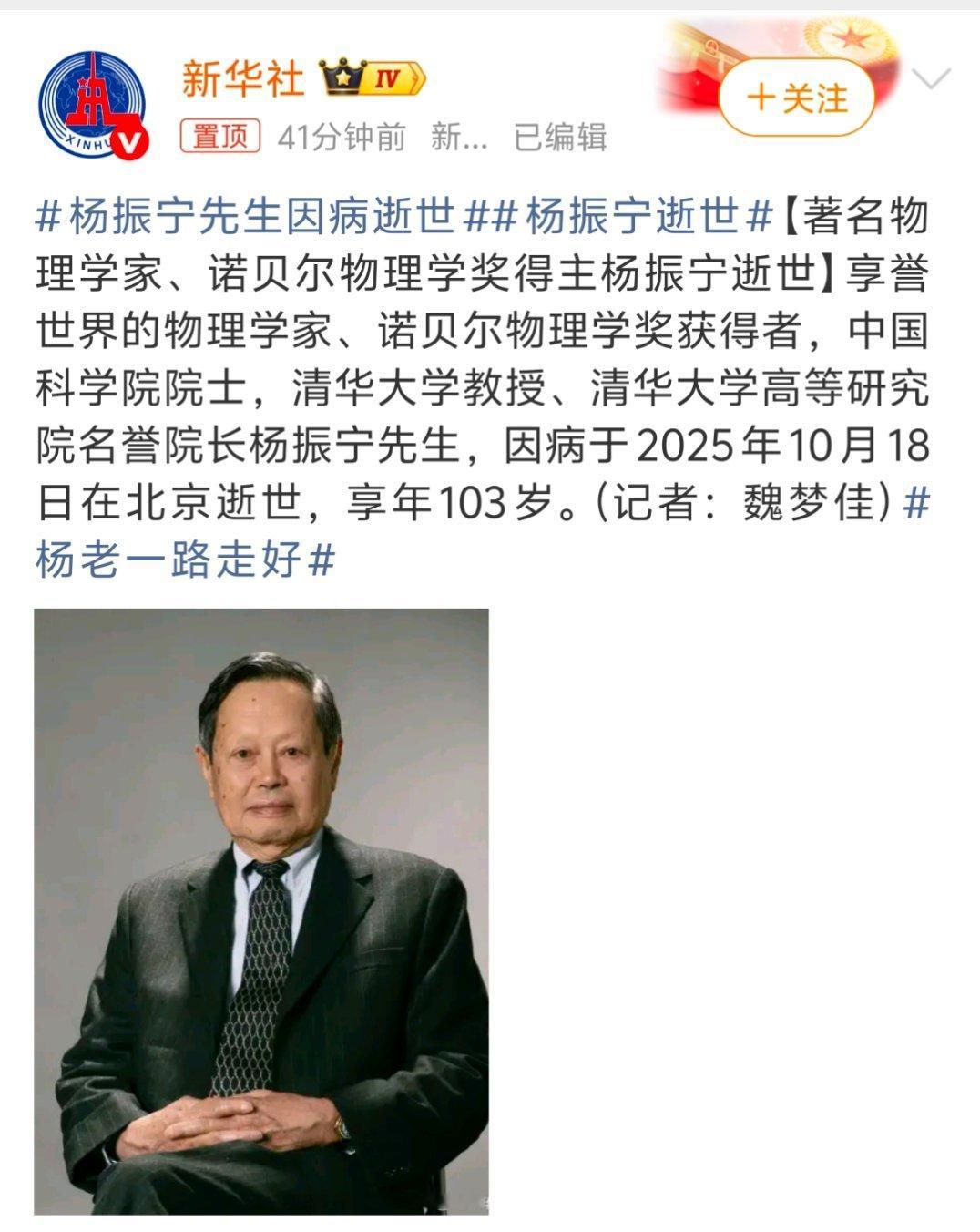杨振宁逝世昨天还看到有人说他病重的事情,突然就看到讣告~确实有点太震惊了!杨振宁