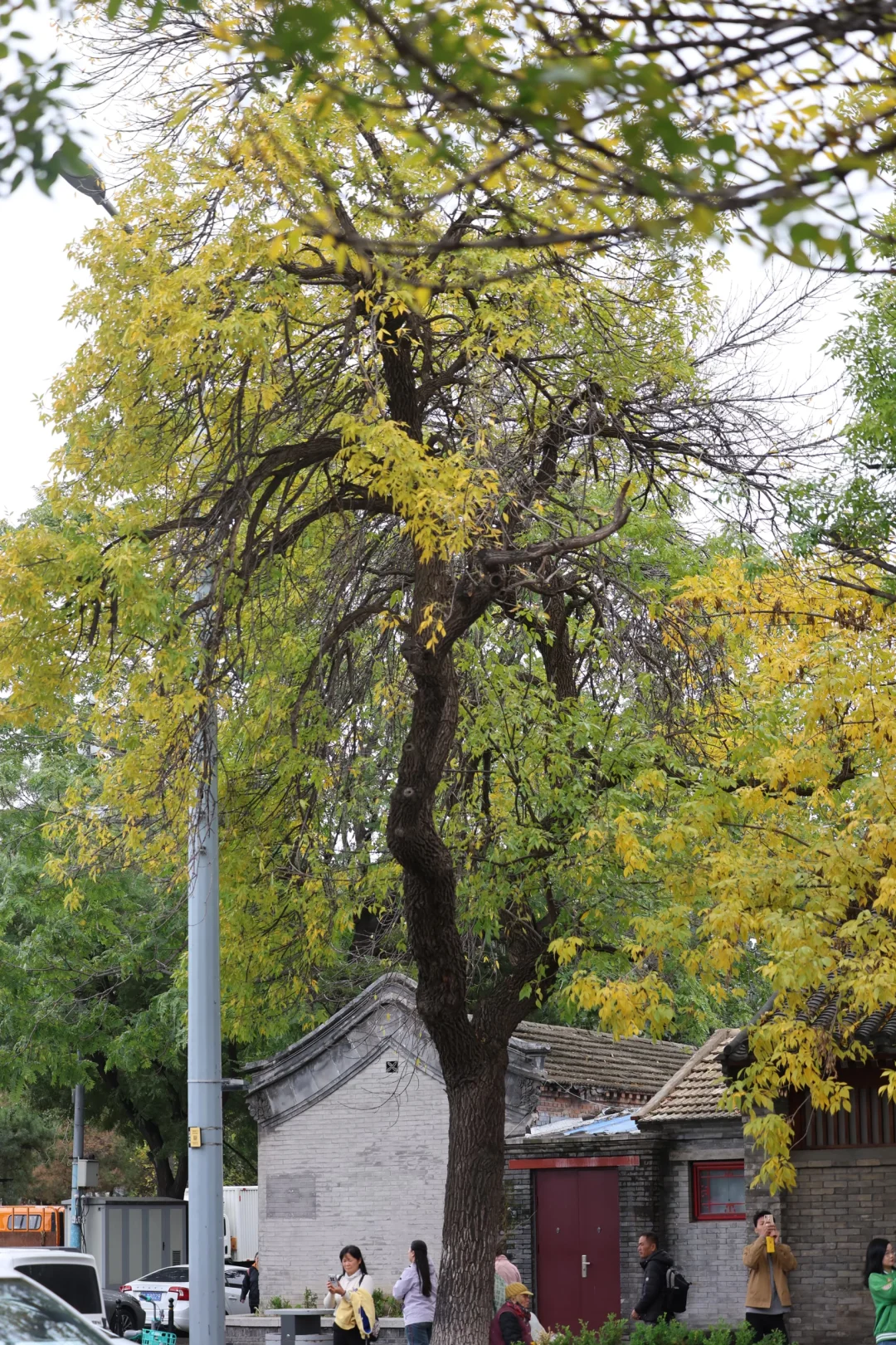 哦,北锣鼓巷,东不压我刚也去了,就财神庙旁边这棵黄了,其他还不行,得等等。