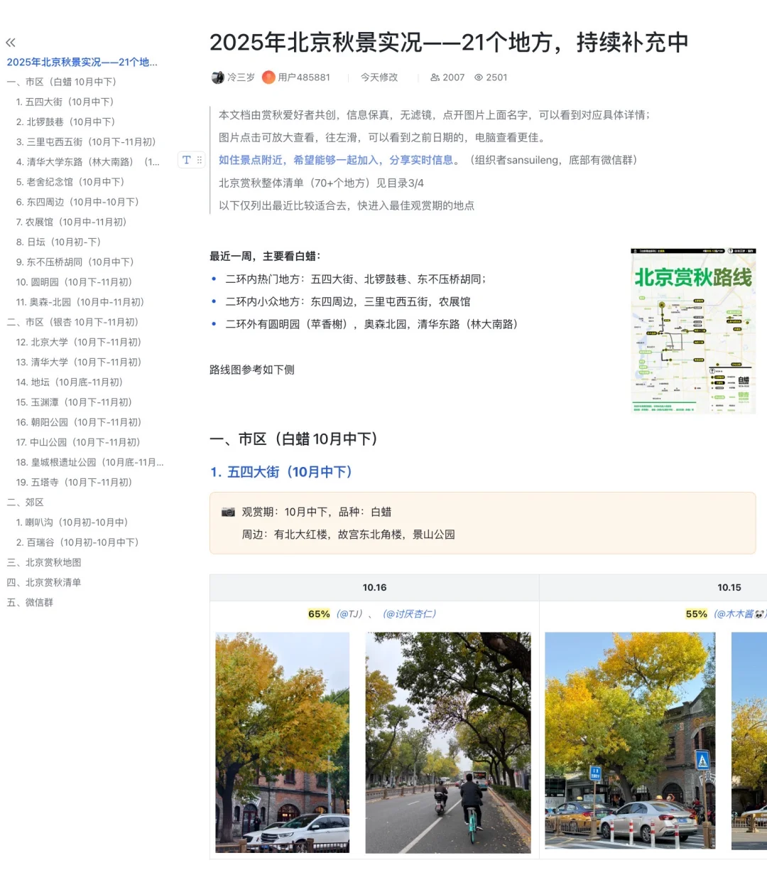 [飞吻R][飞吻R]另外,北京主要的赏秋地点,我和热心网友们整理了一个文档,每天会更新真实的秋叶情况,方便大家参考来北京玩的时间,类似图18,免费公开的。