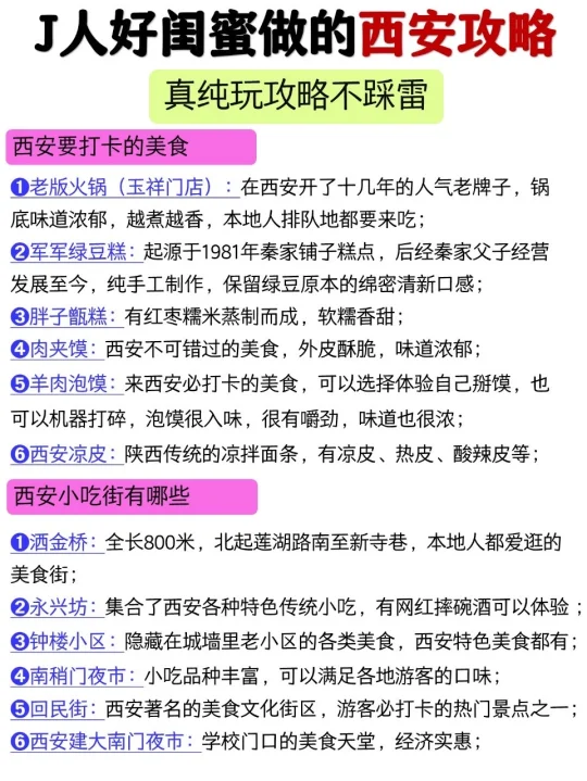 J人好闺蜜做的西安旅游攻略👍真纯玩