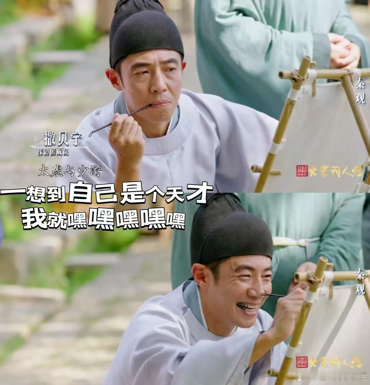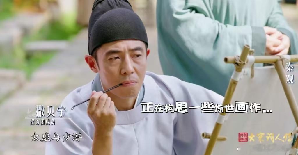 撒贝宁的墨水不会是口水吧 《宗师列传大宋词人传》笑点被撒贝宁承包!无实物画画把毛笔放嘴里 “续墨水”,调侃他墨水是口水太逗,口才顶流画画也能整出这么多梗!