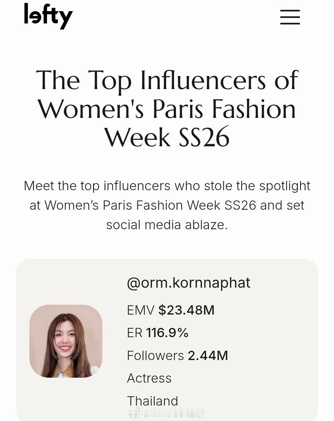 Dior是巴黎时装周最高MIV品牌,而Orm通过她自己发帖就贡献了Dior总MIV的11%
