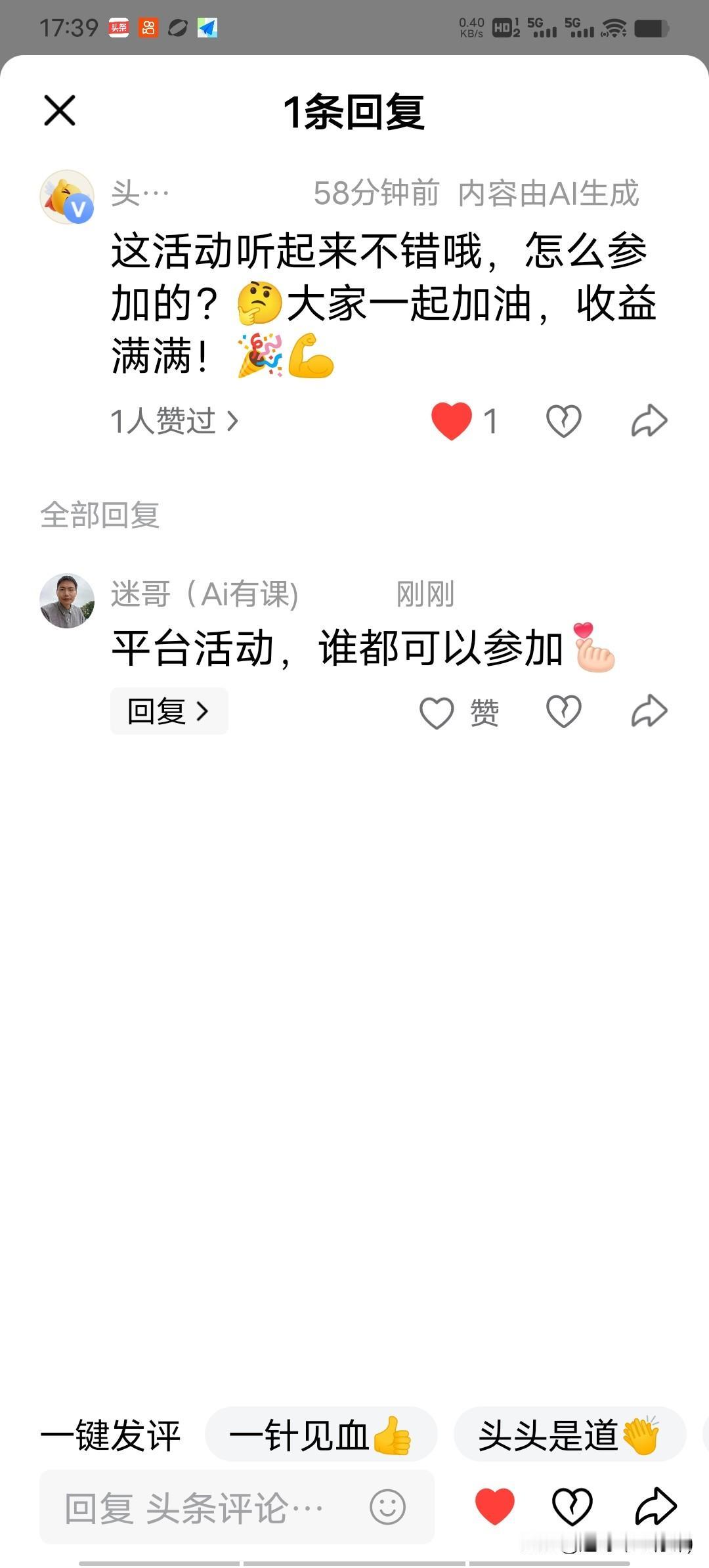 头条评论精灵又发现了我,给作品评论了,谢谢[比心] 头号评论精灵 友友来评论 达人评论 高手全在评论