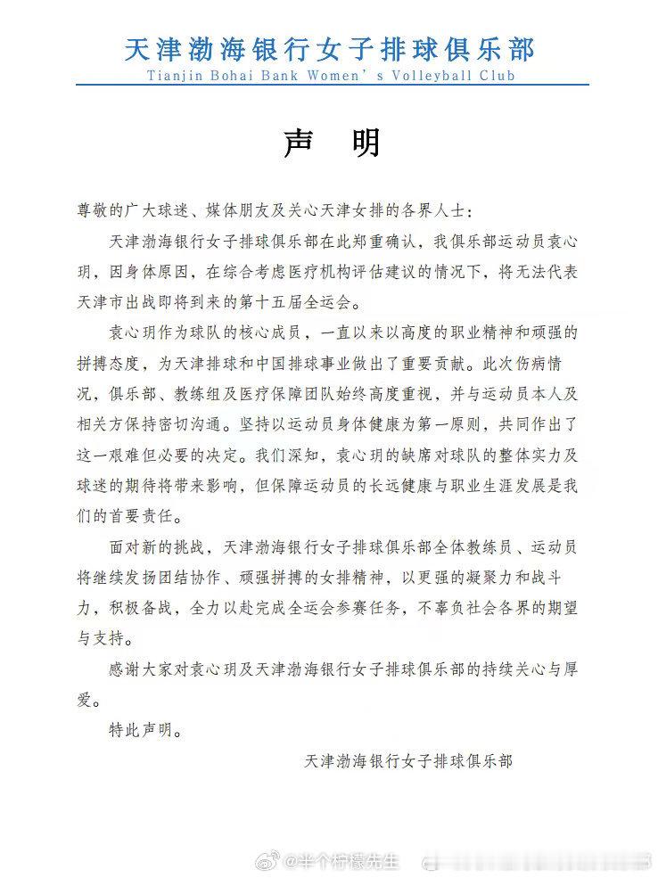 排球新闻 袁心玥因伤缺席天津女排全运会12人名单,或因此影响与费内巴切转会。目前