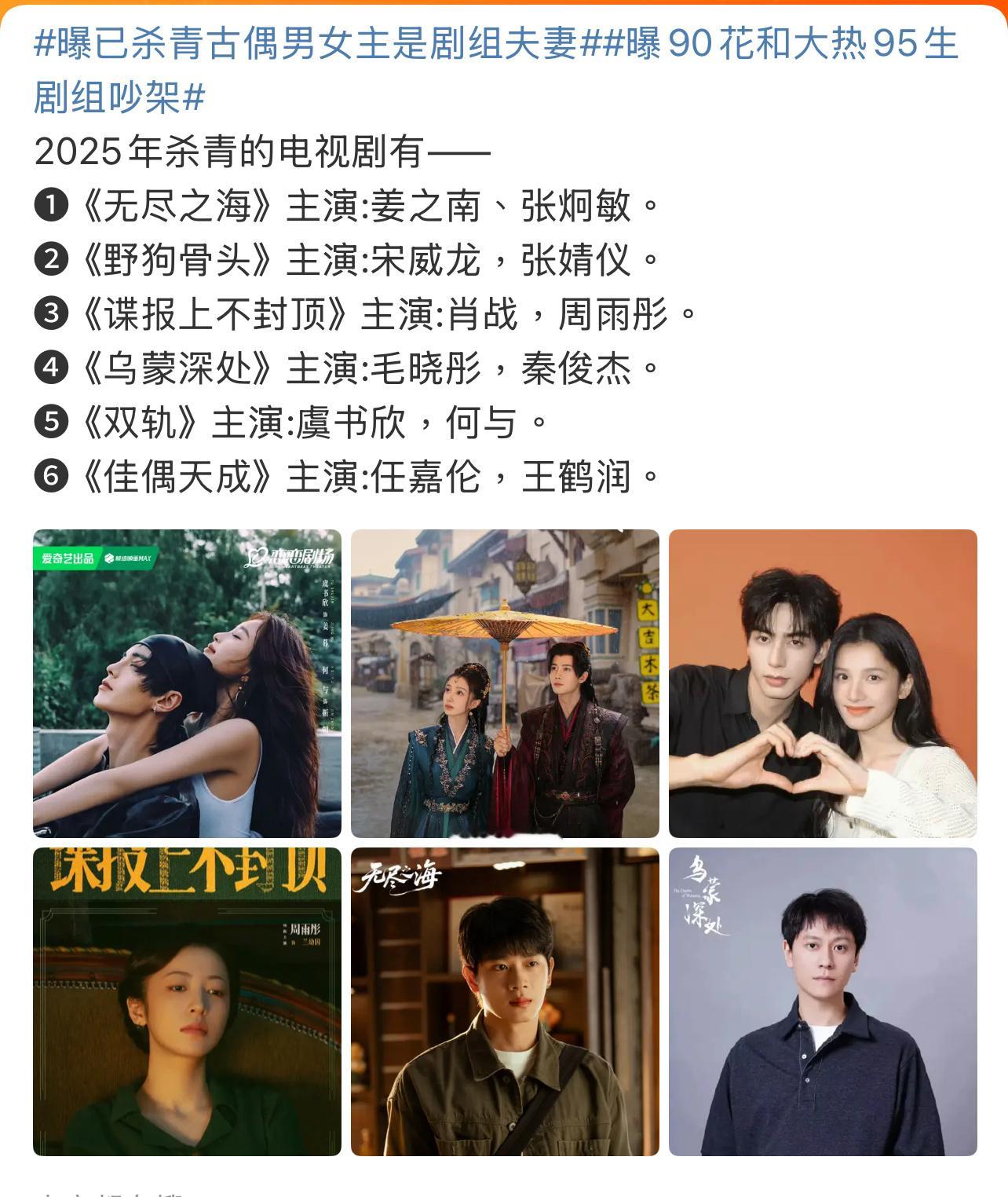 年龄差 3 岁,今年杀青的剧有网友列出来了,看看是谁?[吃瓜][吃瓜][吃瓜]曝已杀青古偶男女主是剧组夫妻