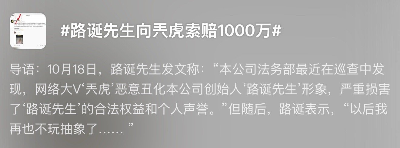 路诞先生向兲虎索赔1000万这是闹着玩的吧[笑cry]