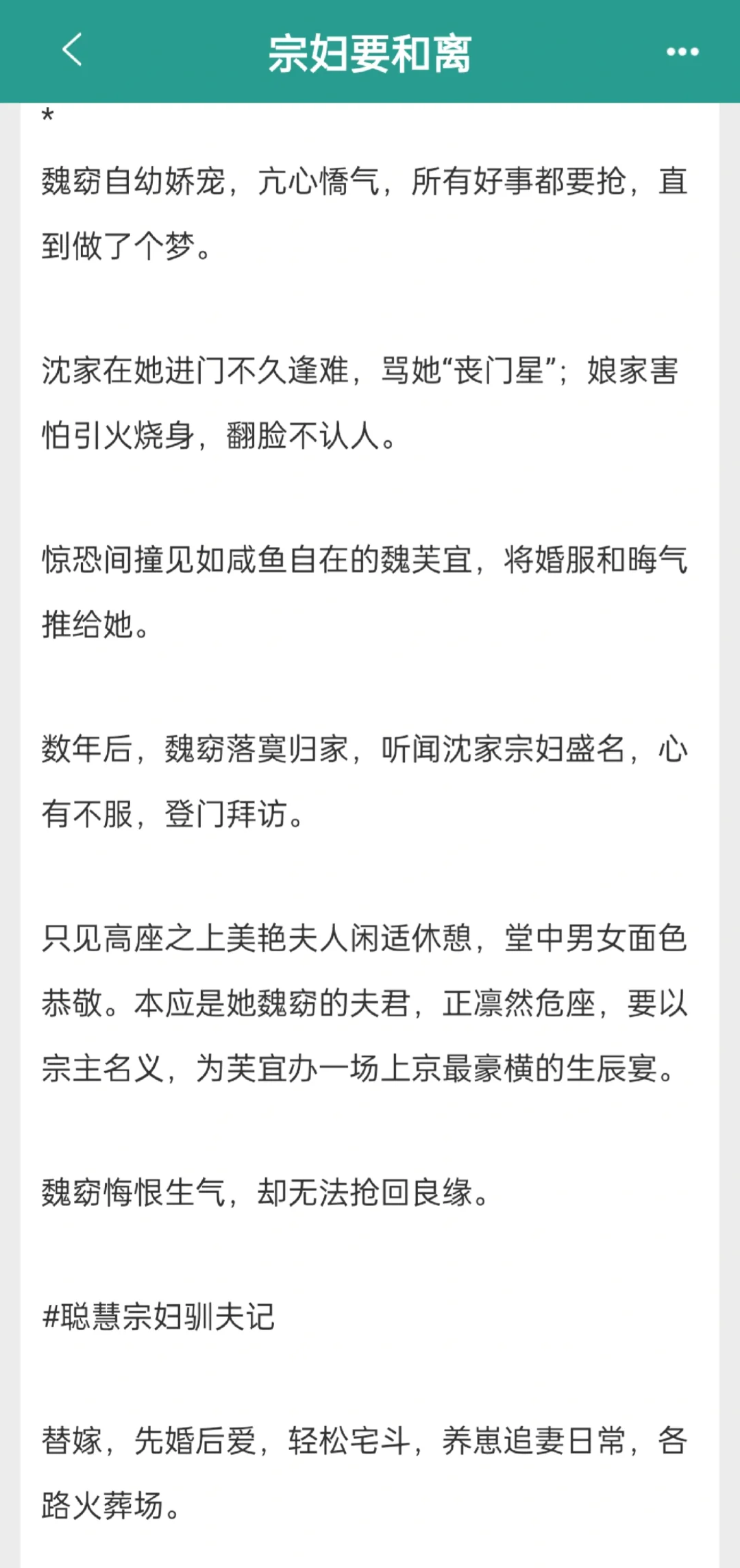 超绝妈妈级别的女主!女主庶出被家族边缘,因为嫡姐逃婚突然替嫁大世家宗子,谨小慎微掩盖住自己替嫁身份,本本分分做好宗妇职责,男主一开始无所谓,后来一整个真香。[捂嘴笑R] 故事开篇时已经成婚第五年,女主五年间只生一个女儿宗族压力大,需要一个儿子巩固地位,但男主终日忙于朝政扶持皇子他没空,女主就主动些,借着喝醉撒娇要子,男主面上无动于衷背地里狠宠[偷笑R]最有意思的事,女主不易怀孕,磨了好久终于有了,女主超开心,把中馈仍给老婆婆,老婆婆早看女主不顺眼但没办法[偷笑R] 女主以为怀孕不管中馈后日子能恢复平静,但男主食髓知味,倒计时数日子等女主孕三月[偷笑R][偷笑R][偷笑R]