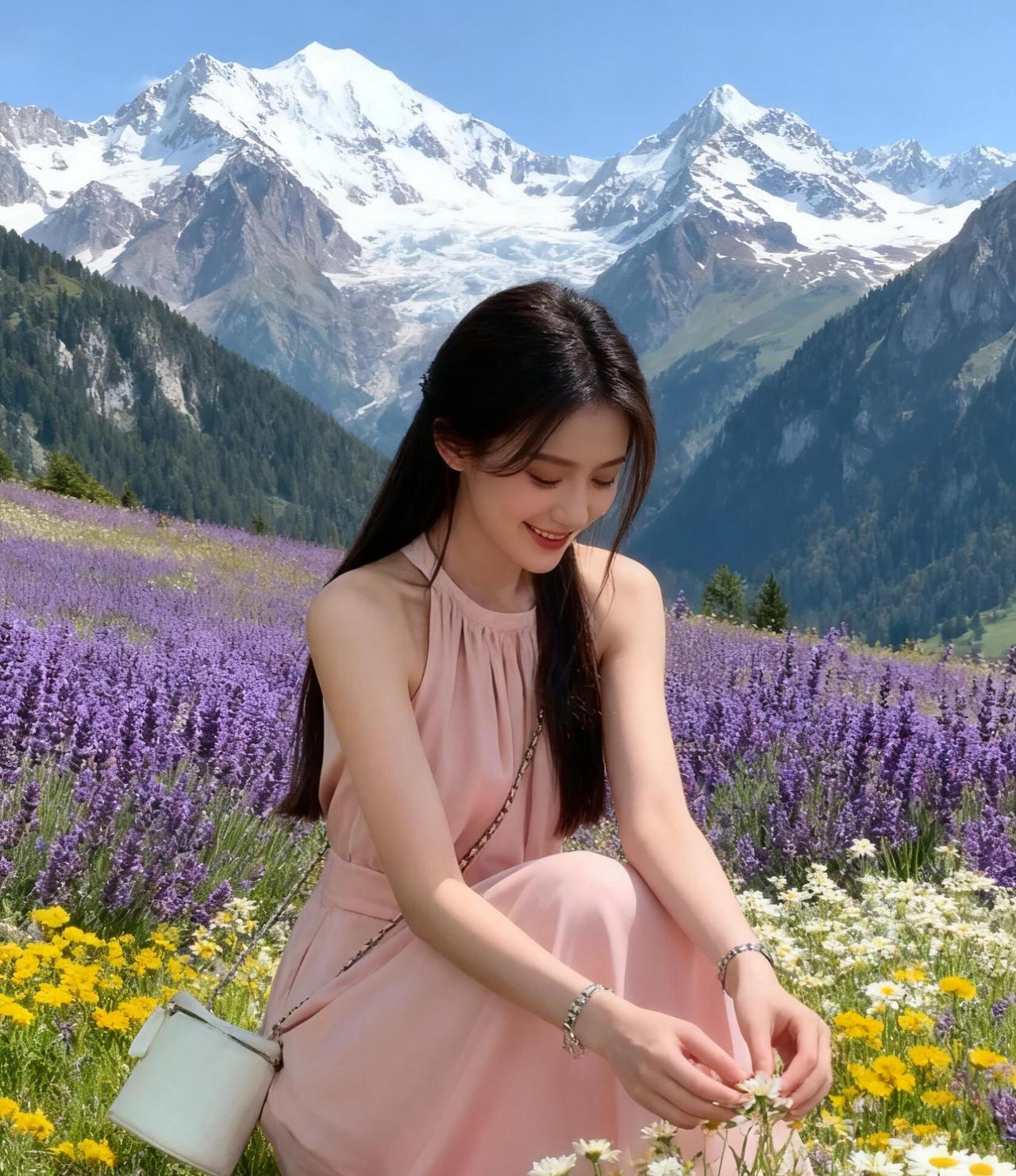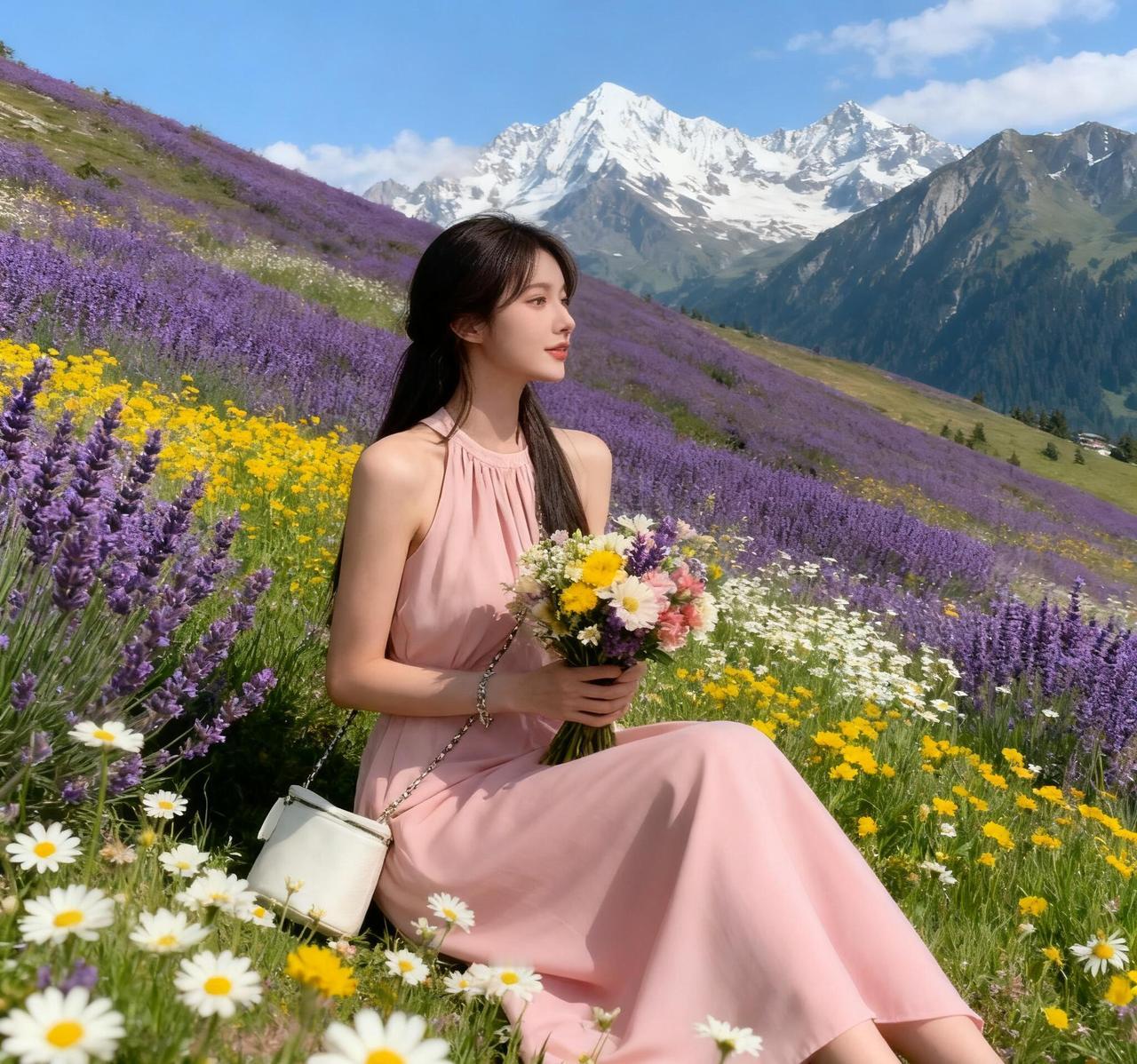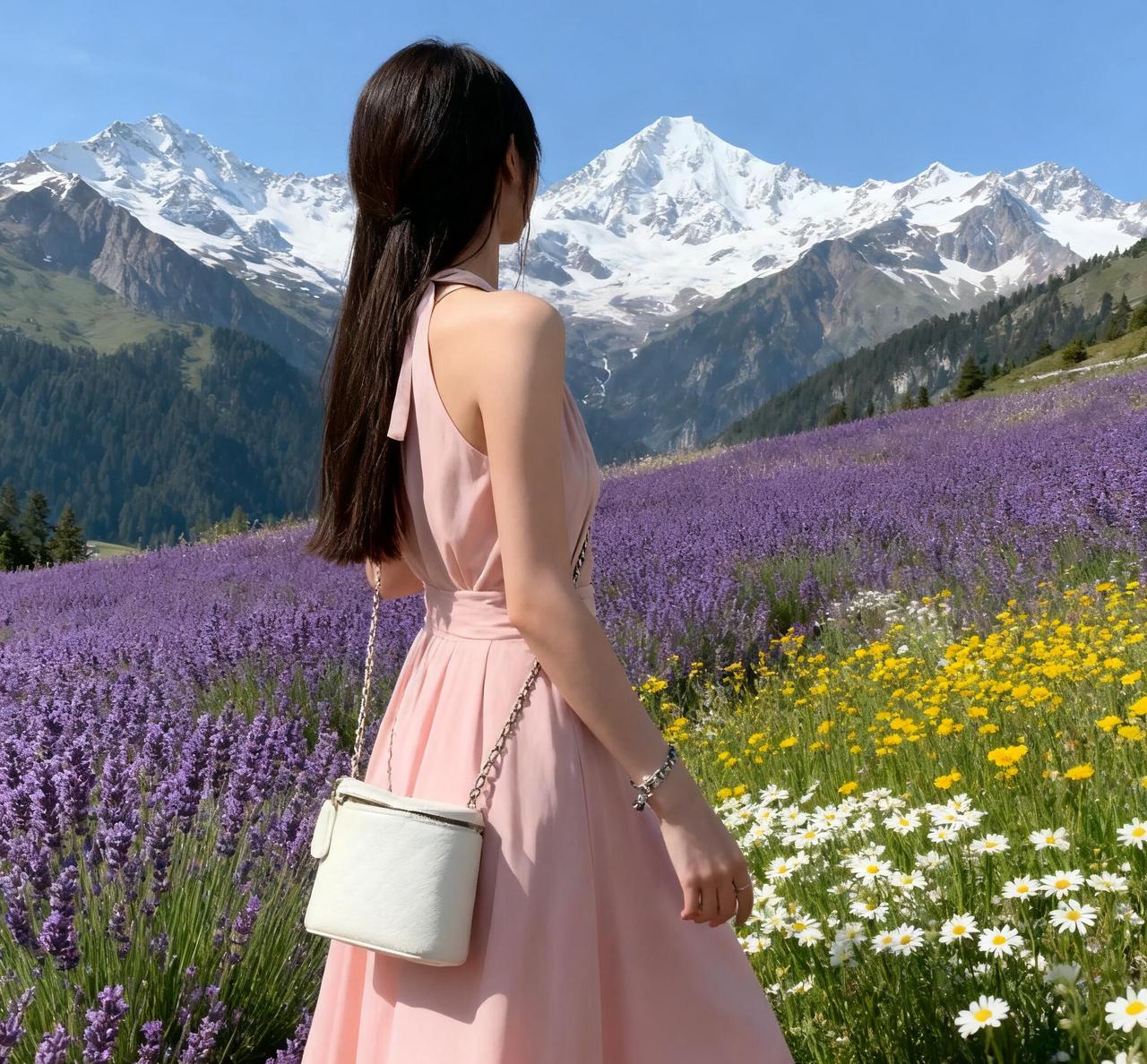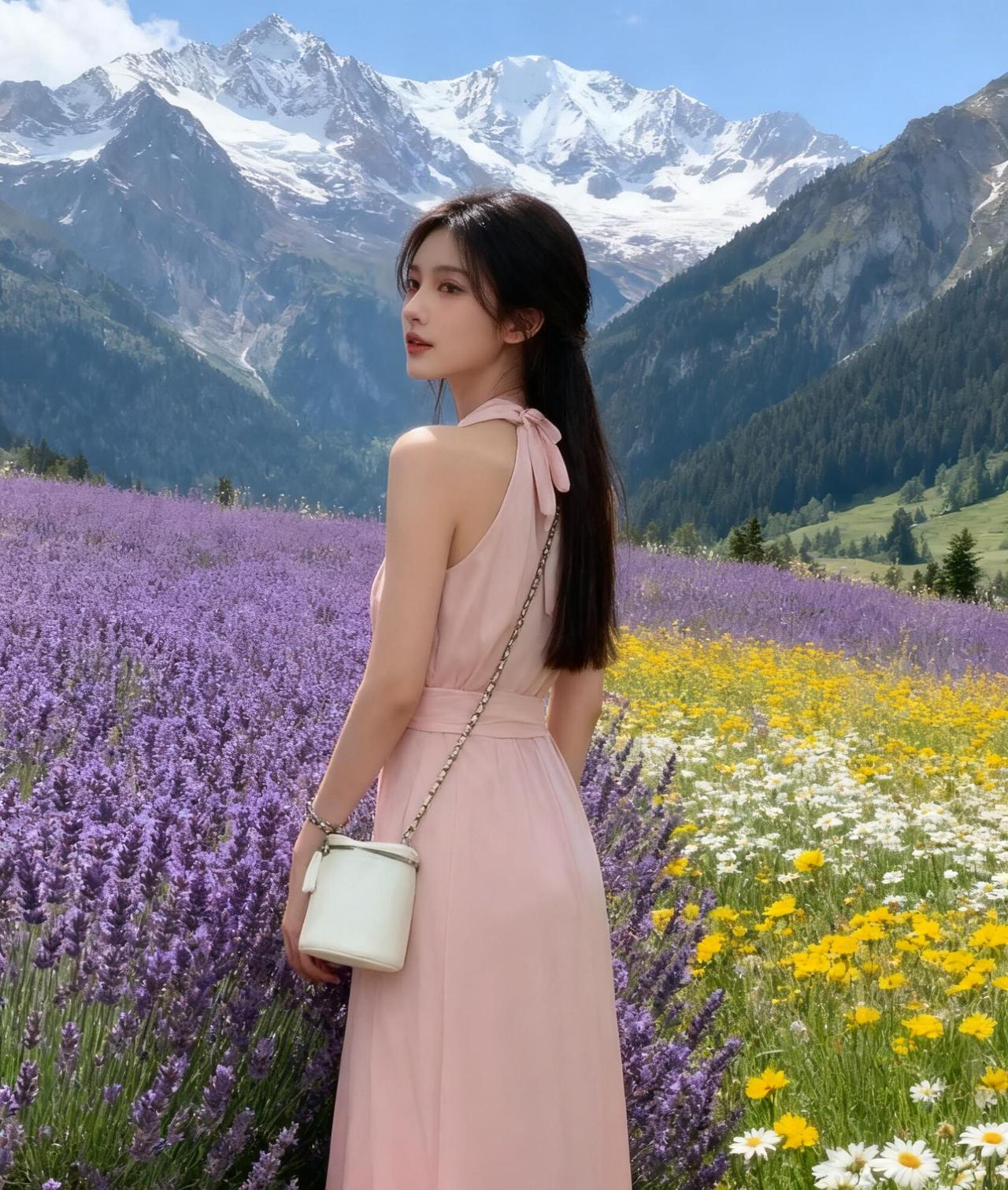 优雅粉裙绿意盎然静享美好时光温柔浪漫粉裙 穿搭