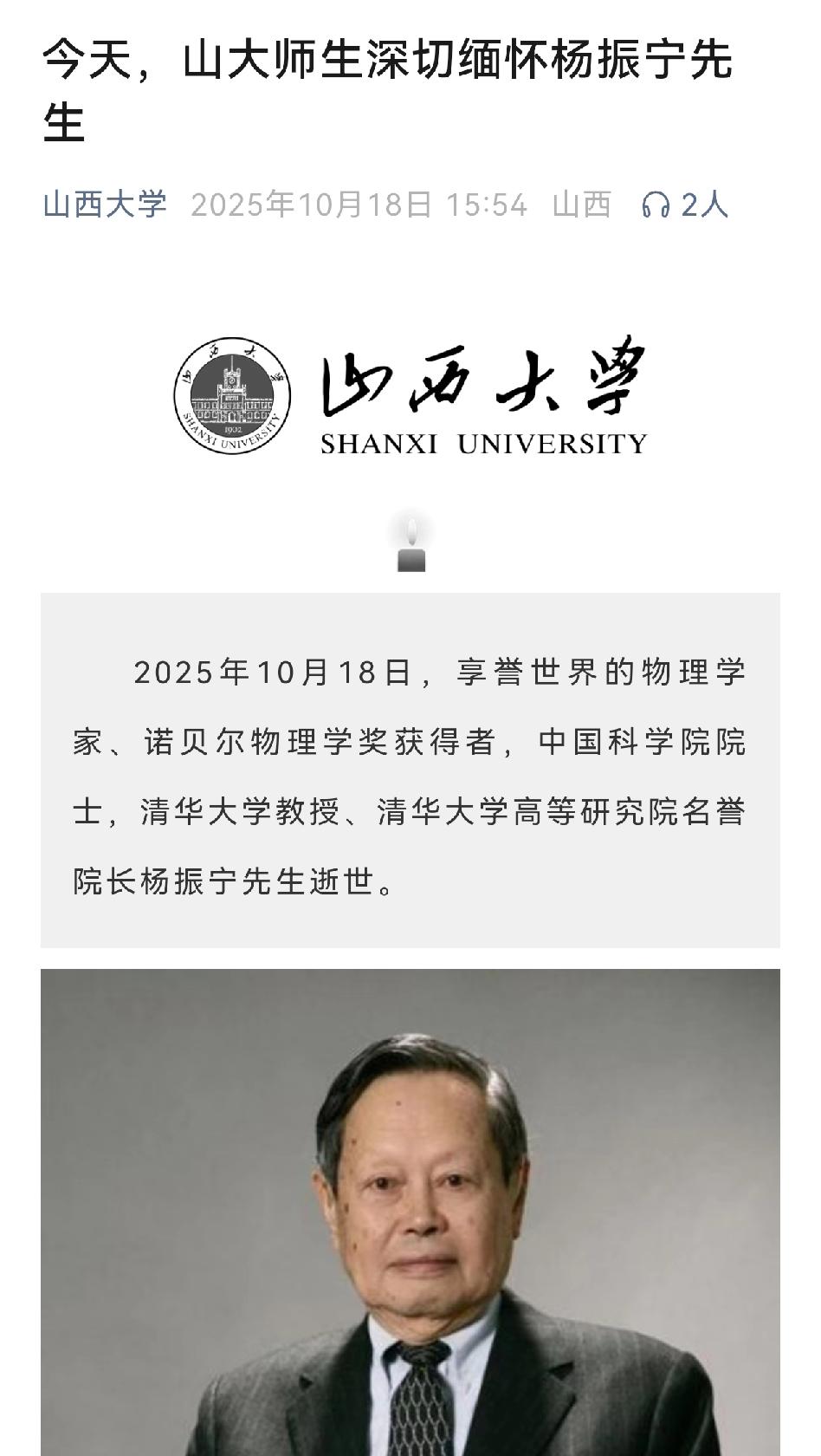 杨振宁先生千古!致敬杨先生! 清华大学官微黑白配色 山西大学官微黑白配色 西湖大学官微黑白配色 东莞理工学院官微黑白配色