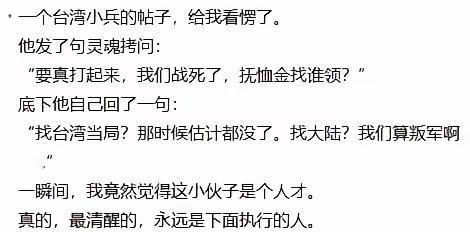 起义,这是最优选项。不要幻想着投诚或投降,因为两岸武器的代差,你们没有机会投诚或投降。若倒戈卸甲,以礼来降,仍不失封侯之位,国安民乐,岂不美哉?直接把弯弯长官抓了起义,起码战后一个公务员稳稳的铁饭碗,顽抗到底自己人没了,老婆孩子成别人的了,父母还没人送终,脑子清醒点的都会选吧。