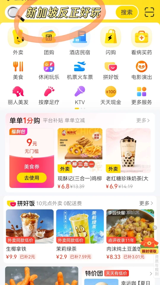 ⚠️划重点!打开美团APP搜「新加坡反正好玩」进入主题页面