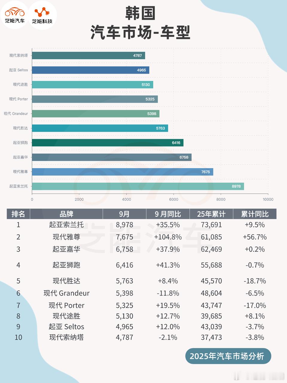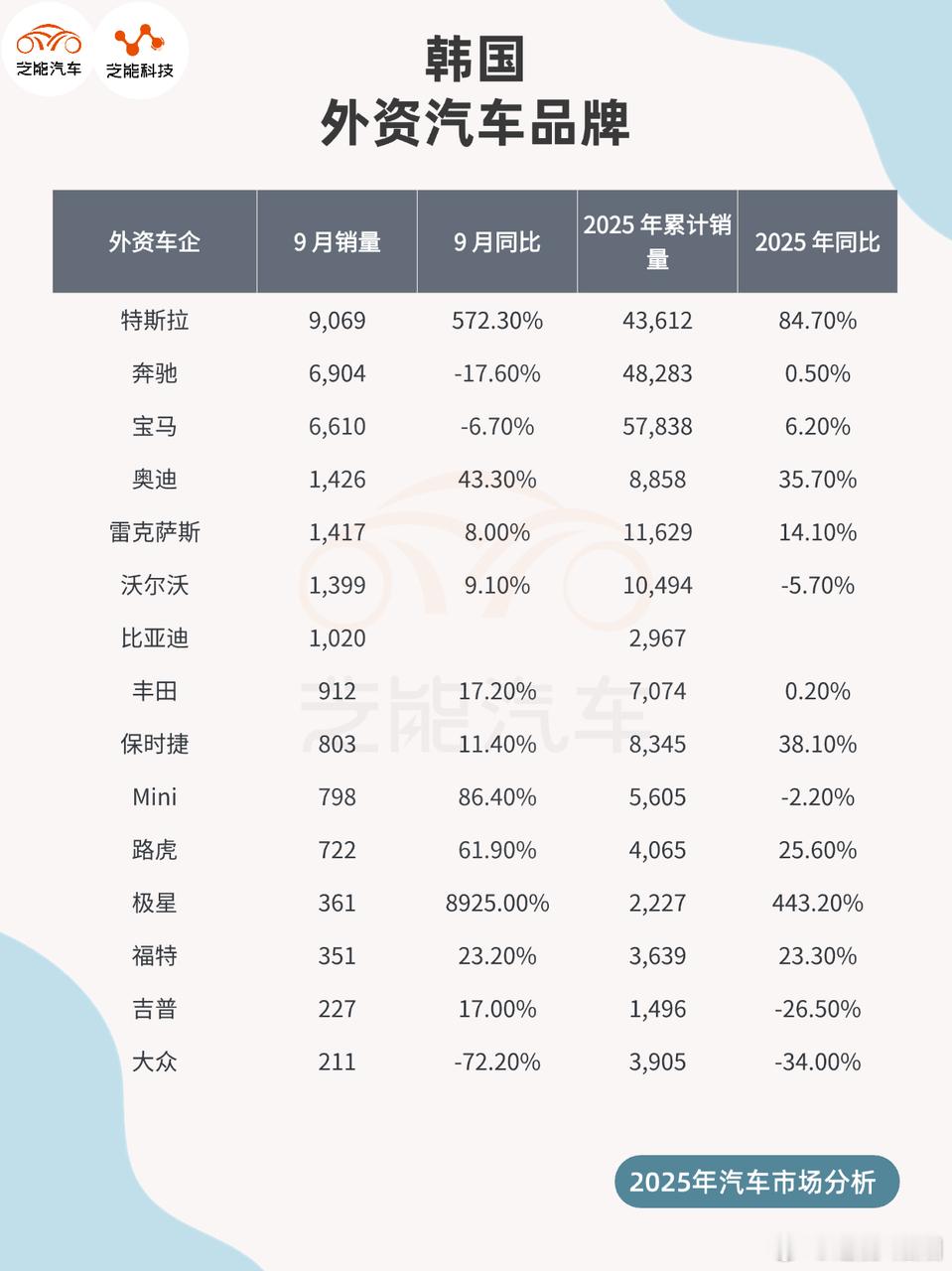 2025 年 9 月韩国汽车市场销量大增,本土与进口品牌共同推动增长。