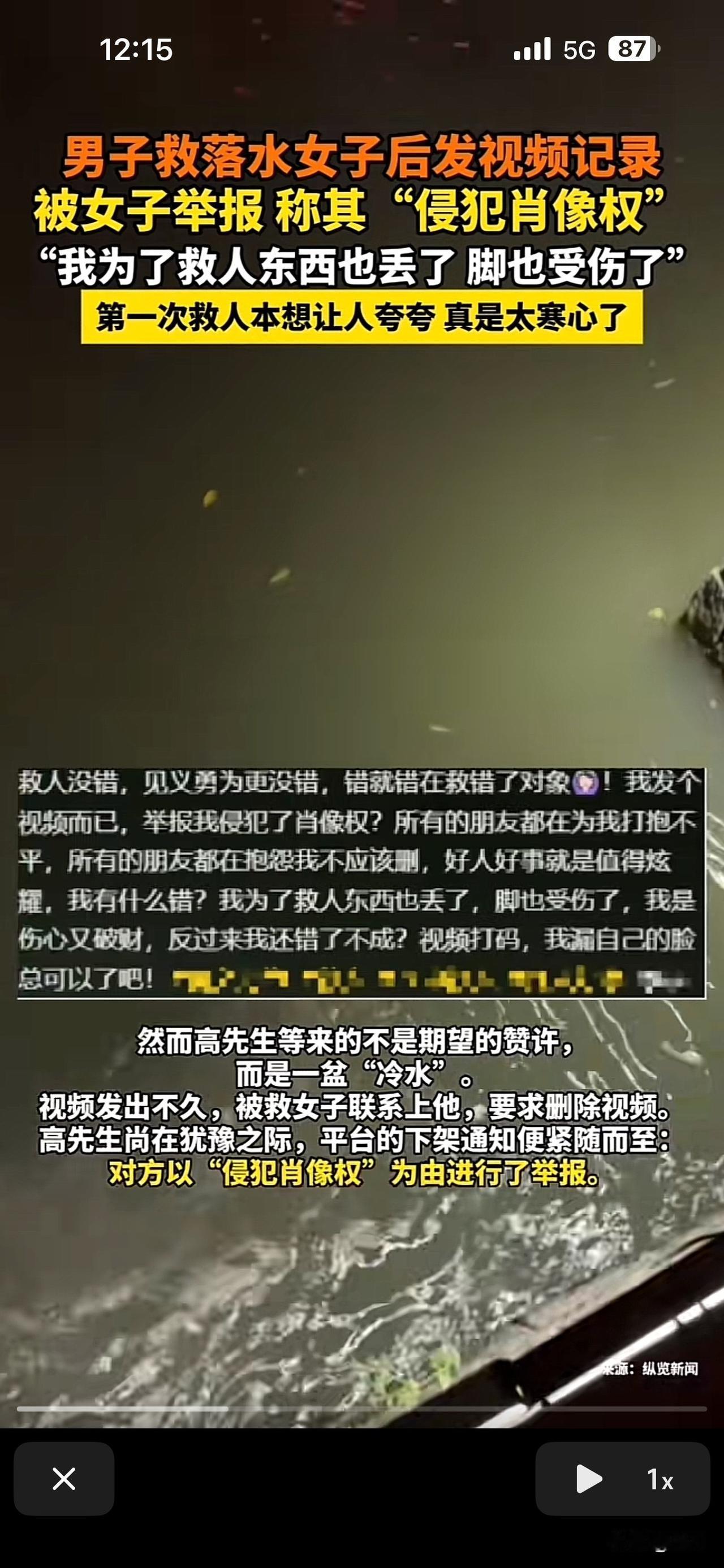 男子救落水女子拍视频发网上后被说成侵犯“肖像权” 近期一女子被救后,居然投诉他的救命恩人。男子实在是恼怒,说自己为了救人,东西丢了,自己也受伤了。难道不应该炫耀吗?小编觉得,这种正能量事件要多多宣传!大家怎么看?模仿他人是否侵犯了肖像权和版权?