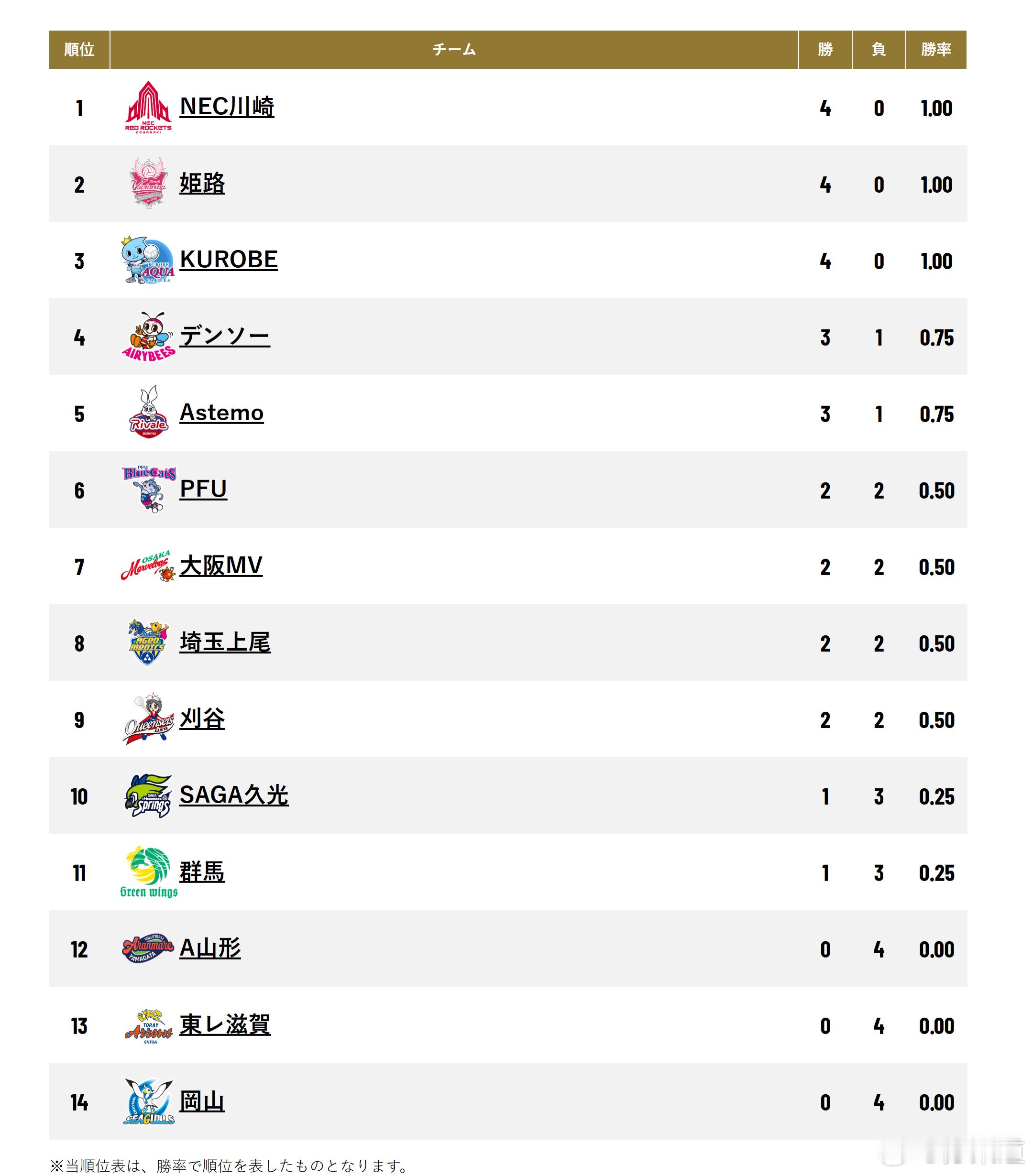 爱知蜜蜂电装遭遇赛季首败,川崎NEC红色火箭、姬路 和富山黑部水仙全胜,且NEC火箭是0失局