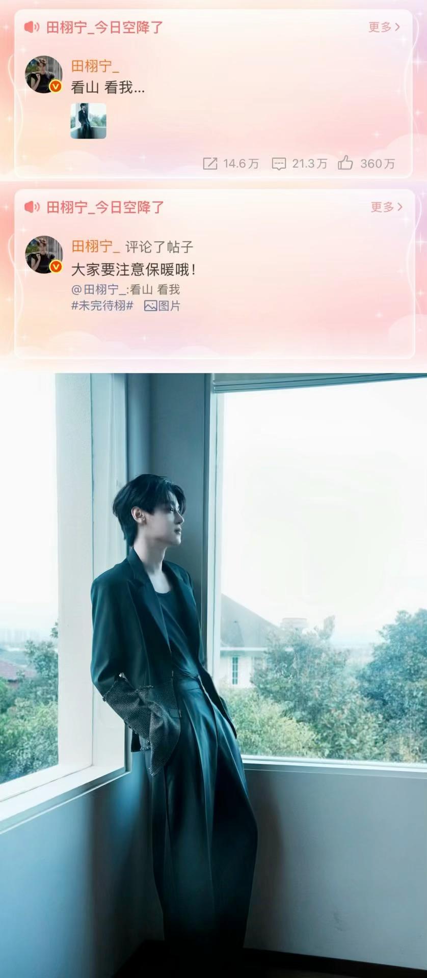 田栩宁好薄,瘦了好多啊!侧颜五官好立体好帅腰好细破碎感拉满,真的很权威!还提醒大家要注意保暖哦,太温柔了!田栩宁发博