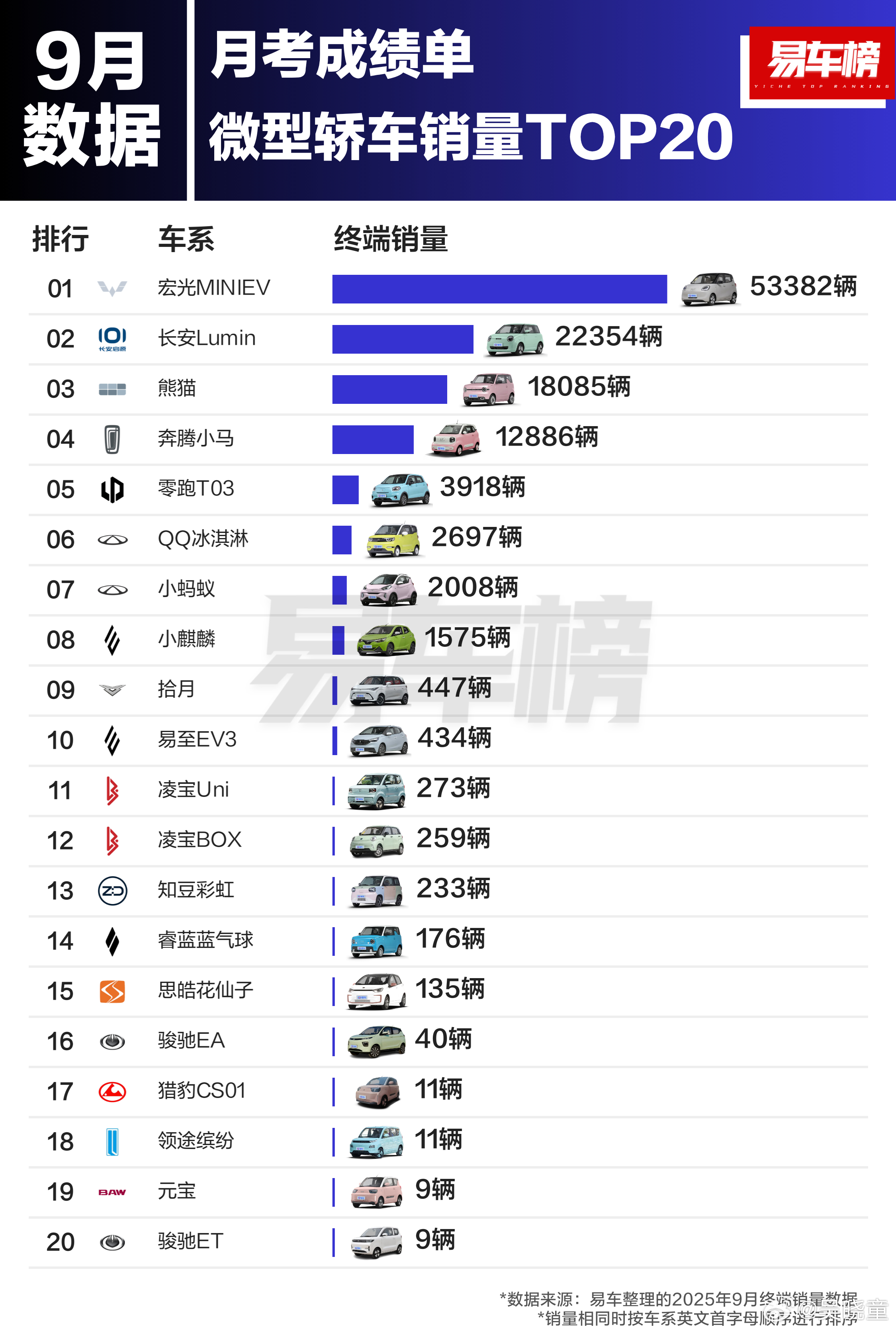 微型车的名单基本没什么变化,宏光MINI EV、长安糯玉米等等前四名几乎包揽这个类别全部销量了。大v聊车