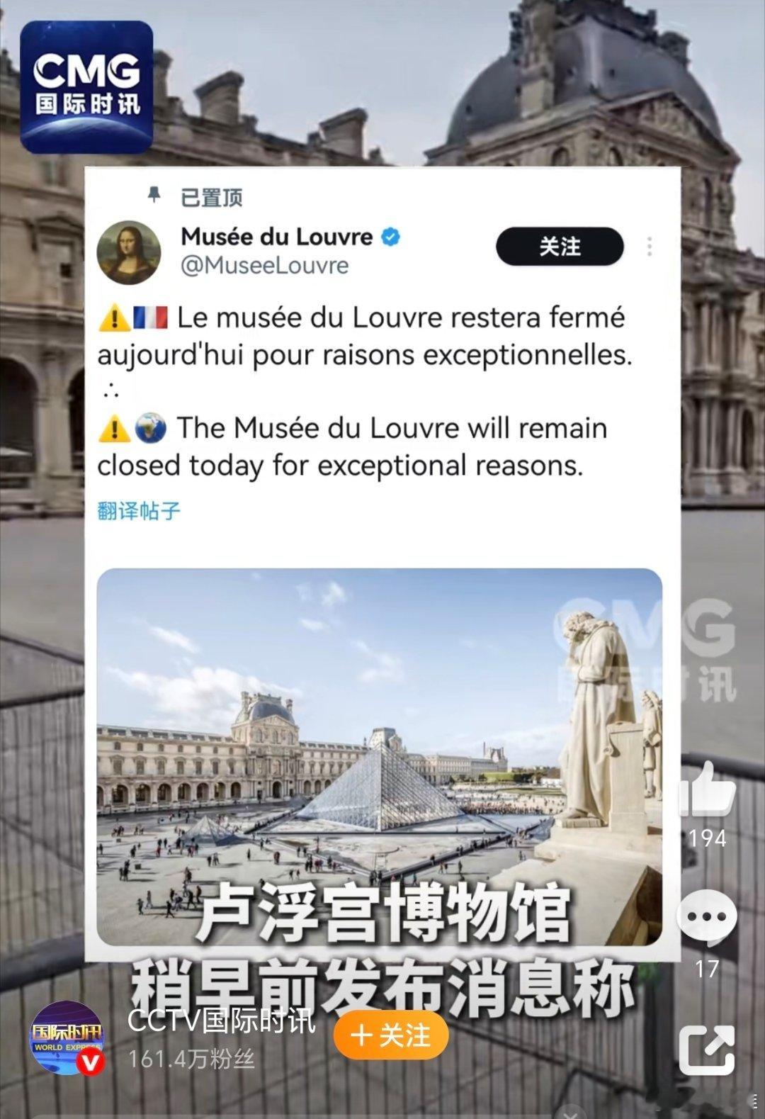 卢浮宫多件藏品被盗卢浮宫的安保,这也太烂了吧,竟然让这群江洋大盗有机可乘。。。网