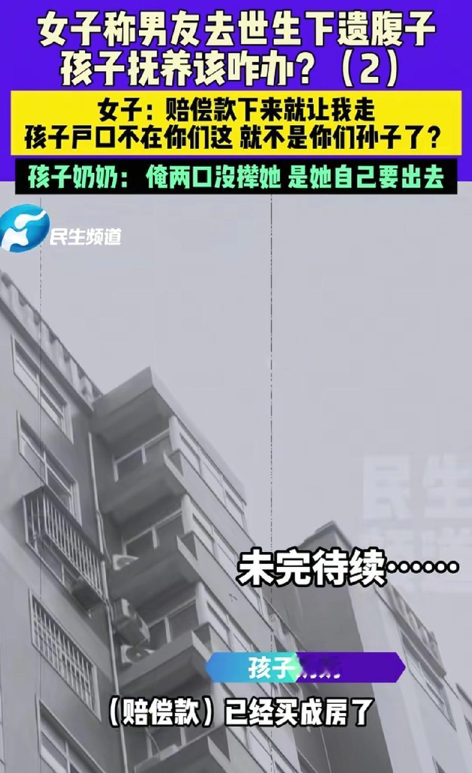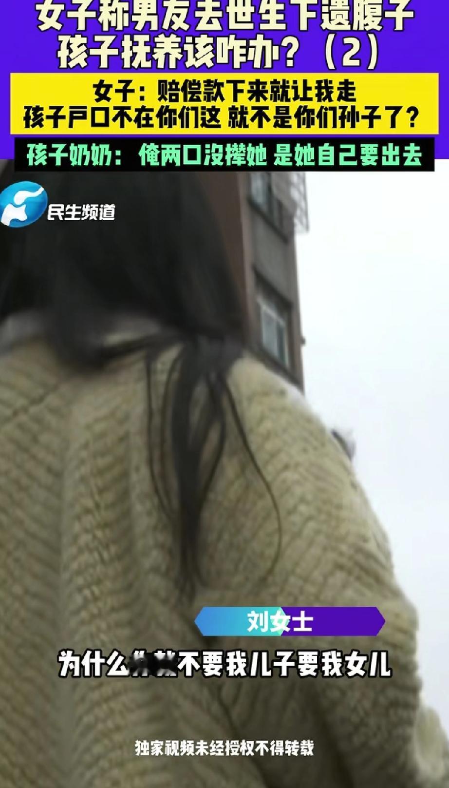 男友遭遇车祸离世,女子毅然生下遗腹子,爷爷奶奶拿了赔偿款,却不认孙子了? 女子和男友均为郑州人,2021年相恋,2022年女儿降生,2023年男友外出谋生养家,在广州开货车时遭遇车祸不幸去世,获80万赔偿款。 二人并未领取结婚证。 女儿跟着爷爷奶奶生活,女子回到娘家,当时已有六个月身孕,很多人劝她打掉孩子,可她实在不舍。 女子生下儿子后,赔偿款到账,打进了爷爷的账户。 女子多次与爷爷奶奶协商,希望将属于儿子和女儿的赔偿款交由她保管。但都遭到拒绝。 爷爷称:“你当初和我儿子在一起时,我就不同意,你们没结婚证,孩子户口还落在你家,我怎会把赔偿款给你?” 这里所说的户口,指的是女子所生儿子的户口落在了女子家中。儿子由女子独自抚养,女儿则留在爷爷奶奶家。 奶奶说:“你生孩子时,你家人不管你,是我去交的住院费,还伺候你坐月子,你咋这么没良心?你要钱是为孩子,还是为你自己?” 爷爷奶奶有两个儿子,因车祸离世的是大儿子。 奶奶还表示:“这赔偿款我用来买房了,这套房子以后就是这俩孩子的。” 她还补充道:“我儿子去世前交代过,说自己不行了,让把赔偿款拿去买房。” 人出了车祸在医院,还能想着用自己的赔偿款给儿女买房吗? 这房子究竟登记在谁名下?是爷爷奶奶,还是小儿子? 女子要求爷爷奶奶将用赔偿款购买的房子过户到自己名下。 爷爷奶奶回应:“你把孙子户口迁到我家,我就把房子转给你。” 从双方的争执中可以看出,彼此互不信任,但出发点都是为孩子好。 爷爷奶奶觉得女子可能会再婚,女子或许认为爷爷奶奶会把属于孩子的赔偿款给其他人。 其实这事不难解决,写一份说明,明确购房款的来源以及房子未来的归属即可。 况且,爷爷奶奶无权占有或处置属于孙子孙女的赔偿款,这属于越界行为。 从爷爷奶奶的态度来看,表面上是为孙子孙女着想,实则也有私心。 建议女子,去法院起诉,由法院来分割赔偿款的归属问题。 同时,每个人都应谨记:务必领取结婚证后再共同生活,这张证书是守护自身合法权益最坚实的保障。 来源:河南广播电视台民生频道