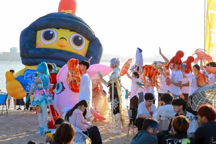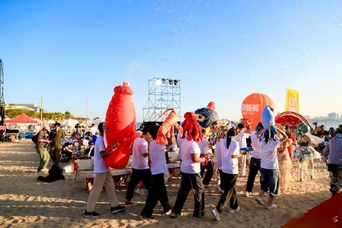 起猛了看到海鲜上街巡游 厦门和平村镇赛的民俗活动太有特色!虾兵蟹将上街巡游,既保留营老爷的传统,又融入海洋元素,新奇有趣还充满地域风情。