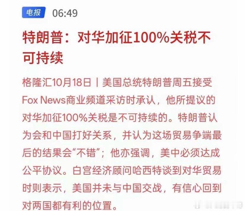 TLP说了,对熊猫加征100%关税不可持续,也意识到其影响越来越小,在升级关税已经毫无意义。