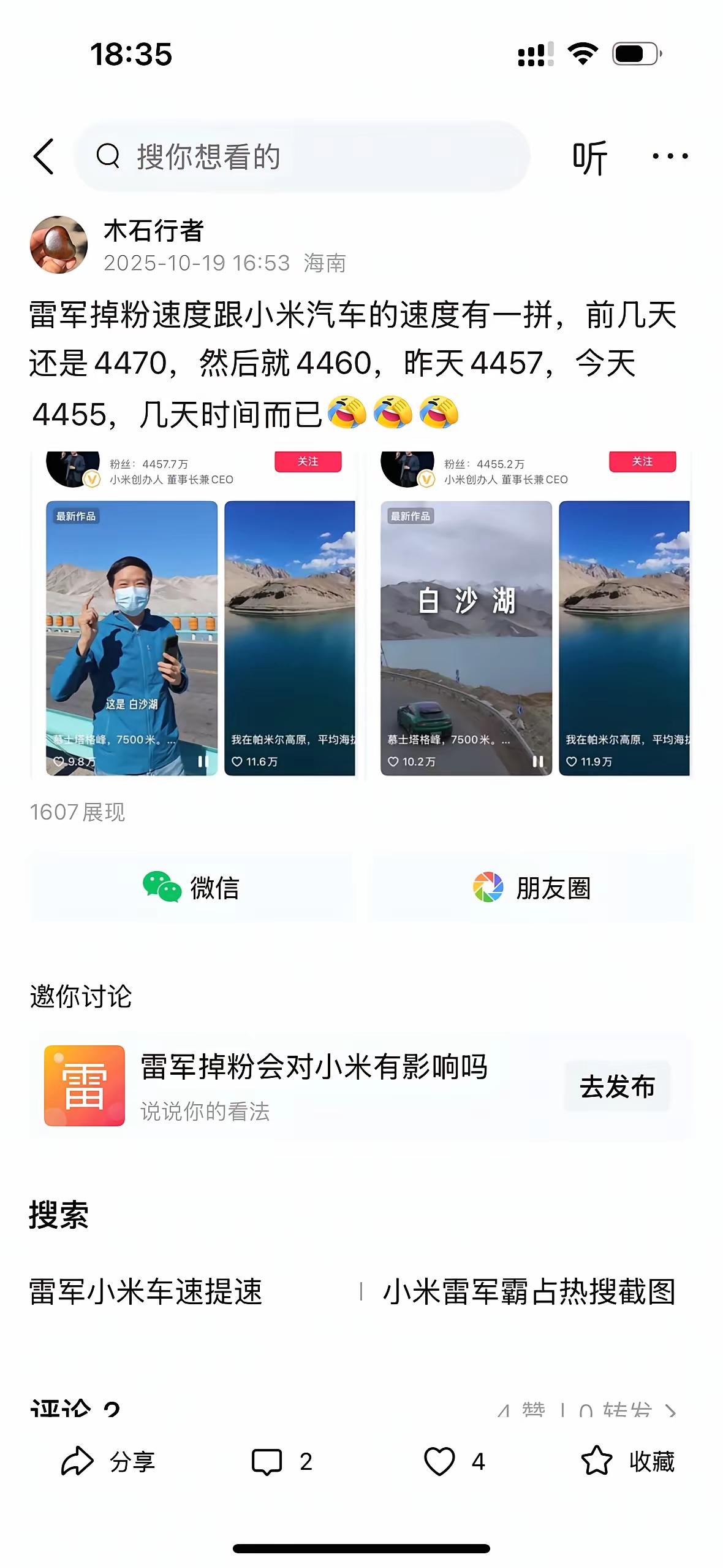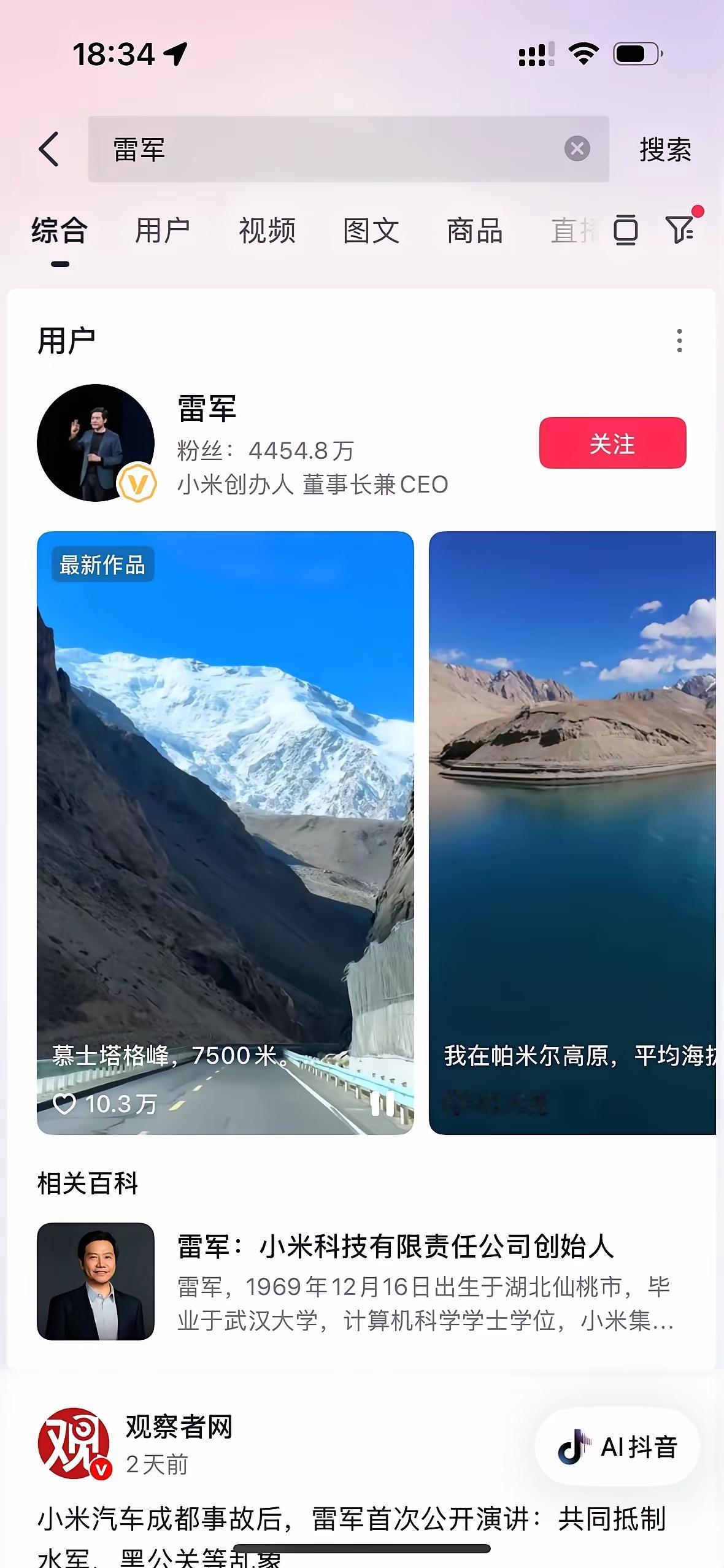 雷军的抖音粉丝现在正以每分钟差不多一百人的速度掉,照这势头下去,保守估计,下周粉