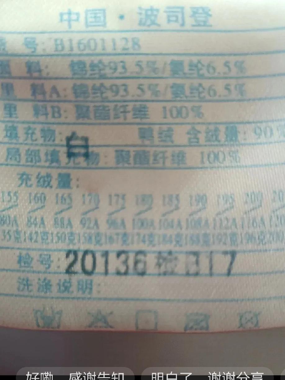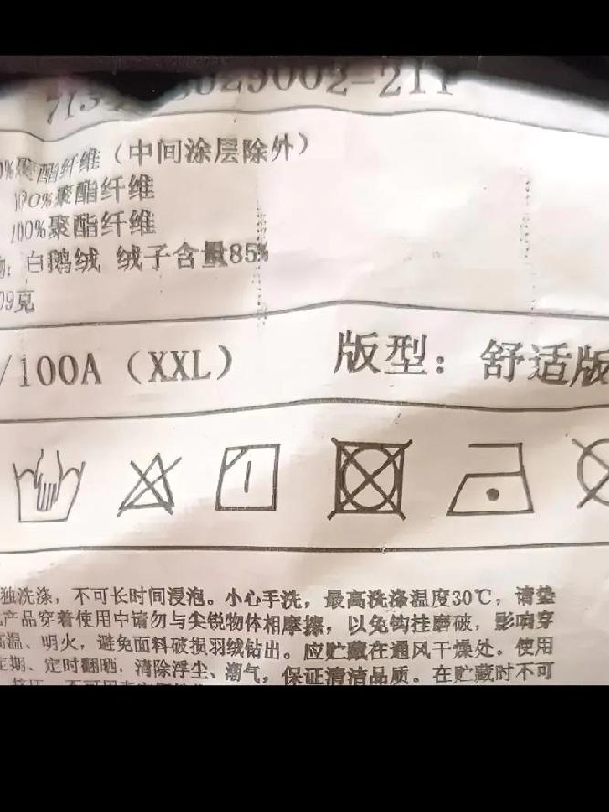再重复一遍,羽绒服只可水洗,不可干洗! 我昨天写了一篇关于自己在家清洗羽绒服的文章,由于这几天太忙了,没时间回复,有几个问题,我统一回复一下吧! 我看有的好友说,她的羽绒服都是干洗,从不水洗。 那我就实话实说,您被骗了!您自己看看您羽绒服上面的标签,都有标识,只可水洗,不可干洗不可熨烫。洗衣店之所以告诉您,必须干洗,是因为他们想收高价,干洗的价格和水洗是不一样的。 他们比我们顾客明白得多,所有羽绒服都必须水洗。 别以为干洗衣服是啥好事,能水洗的绝对不干洗!干洗机里面用的是石油或者四氯乙烯啥的,衣服在那里边轱辘半天,不管深色的浅色的,不管谁家的,一大堆放里边,确实不缩水,但是效果绝对比不上水洗的。 特别是羽绒服,它比较飘,和干衣机里边的油都融不到一起,所以干衣机洗不了。 还有好友说为啥不用洗衣液和肥皂?为啥非用洗洁精? 我昨天分享了给羽绒服怎么去油,置顶了大家可以去看。就是在羽绒服清洗以前,干燥的时候,找出有污渍的地方,用牙刷沾洗洁精涂抹,然后浸泡,再用刷子刷。洗洁精去油效果好,还不掉色。肥皂和洗衣液容易掉色,去油效果也没有洗洁精好,真的,相信我,我开了多年的洗衣店的,绝对不骗人。 有的是先泡水,后用洗衣液清洗重点部位。这样洗也行,但不一定特别干净,因为泡水以后,就找不到污渍的地方了。 另外说羽绒服水洗会爆炸,我洗过无数的羽绒服,都是先去油,后泡水,再刷洗,然后放全自动洗衣机,没有任何问题。也看过羽绒服爆炸的新闻,反正我认为泡透水的羽绒服,再放进洗衣机,绝对不会爆炸! 都看看羽绒服的标识吧!您能看明白吗?