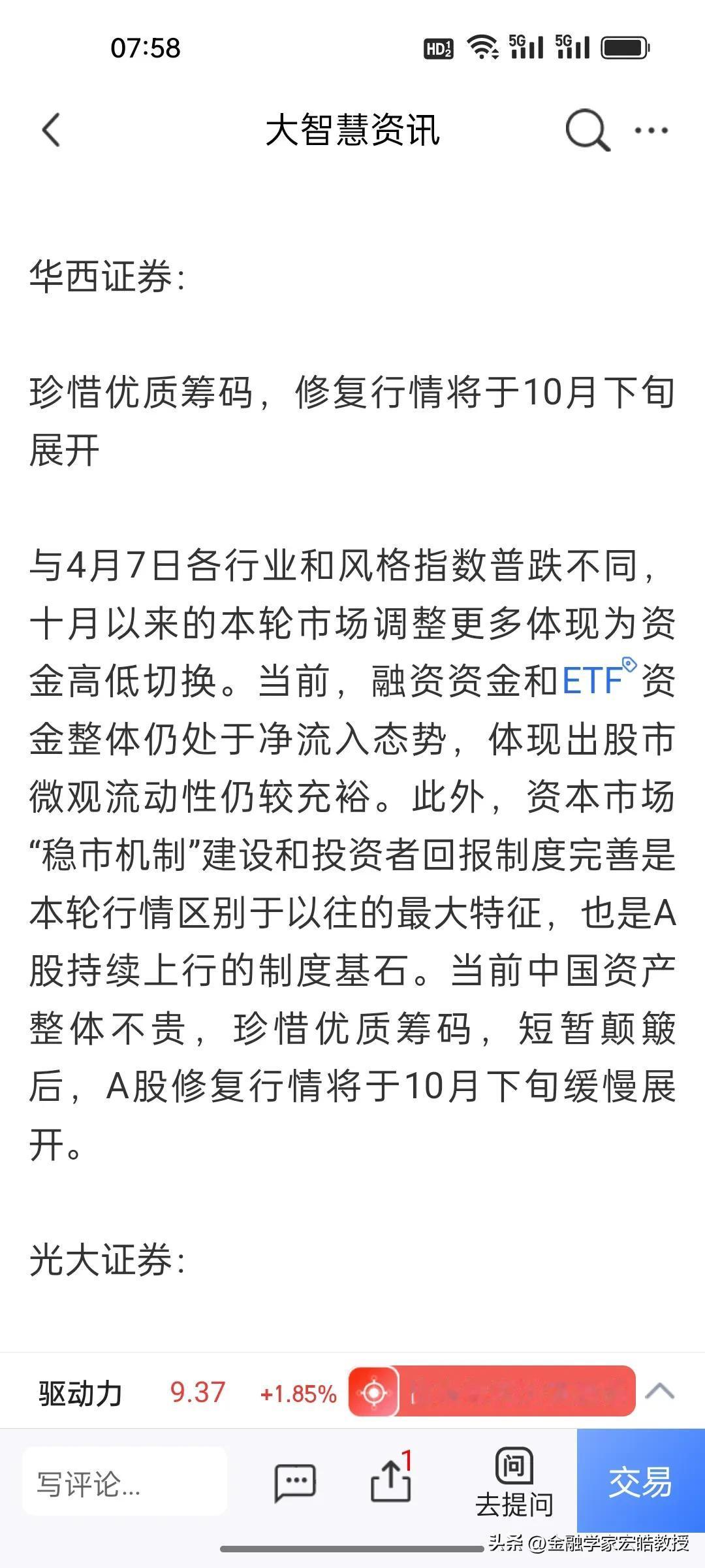 中信建投:目前还是牛市整理期,还没有结束。 今天开盘前,刚刚看到中信建投最新的