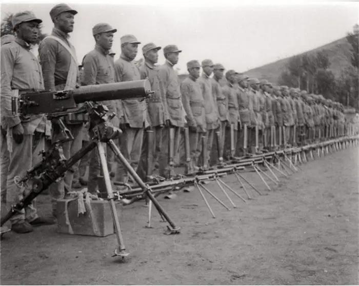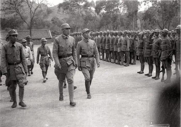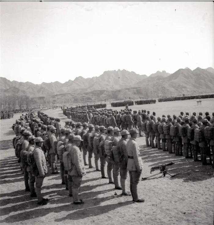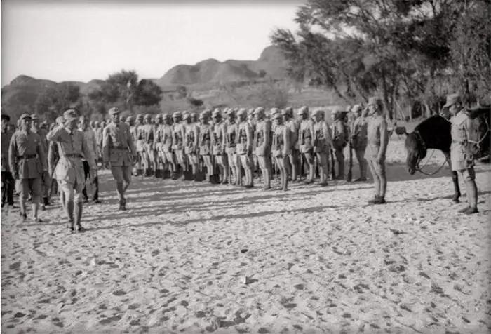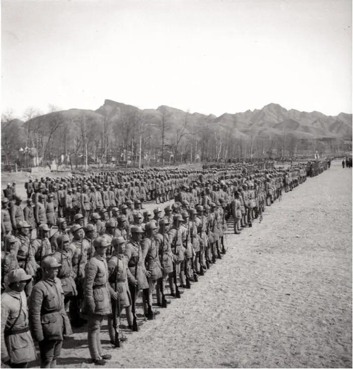 1942年,聂荣臻、聂鹤亭、唐延杰等检阅部队。