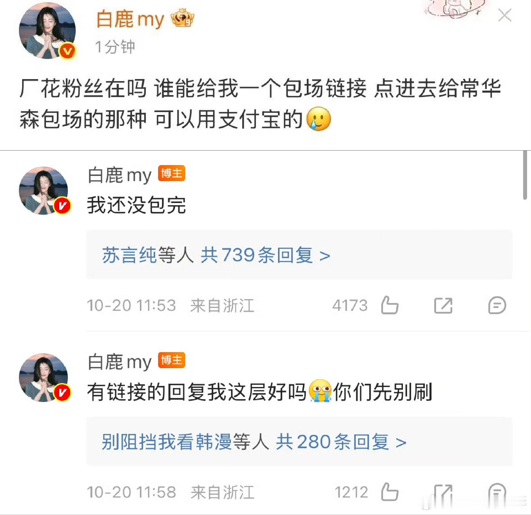 白鹿 谁能给我一个包场链接这是真仗义👍这个白鹿是真找不到包场链接~没招了都