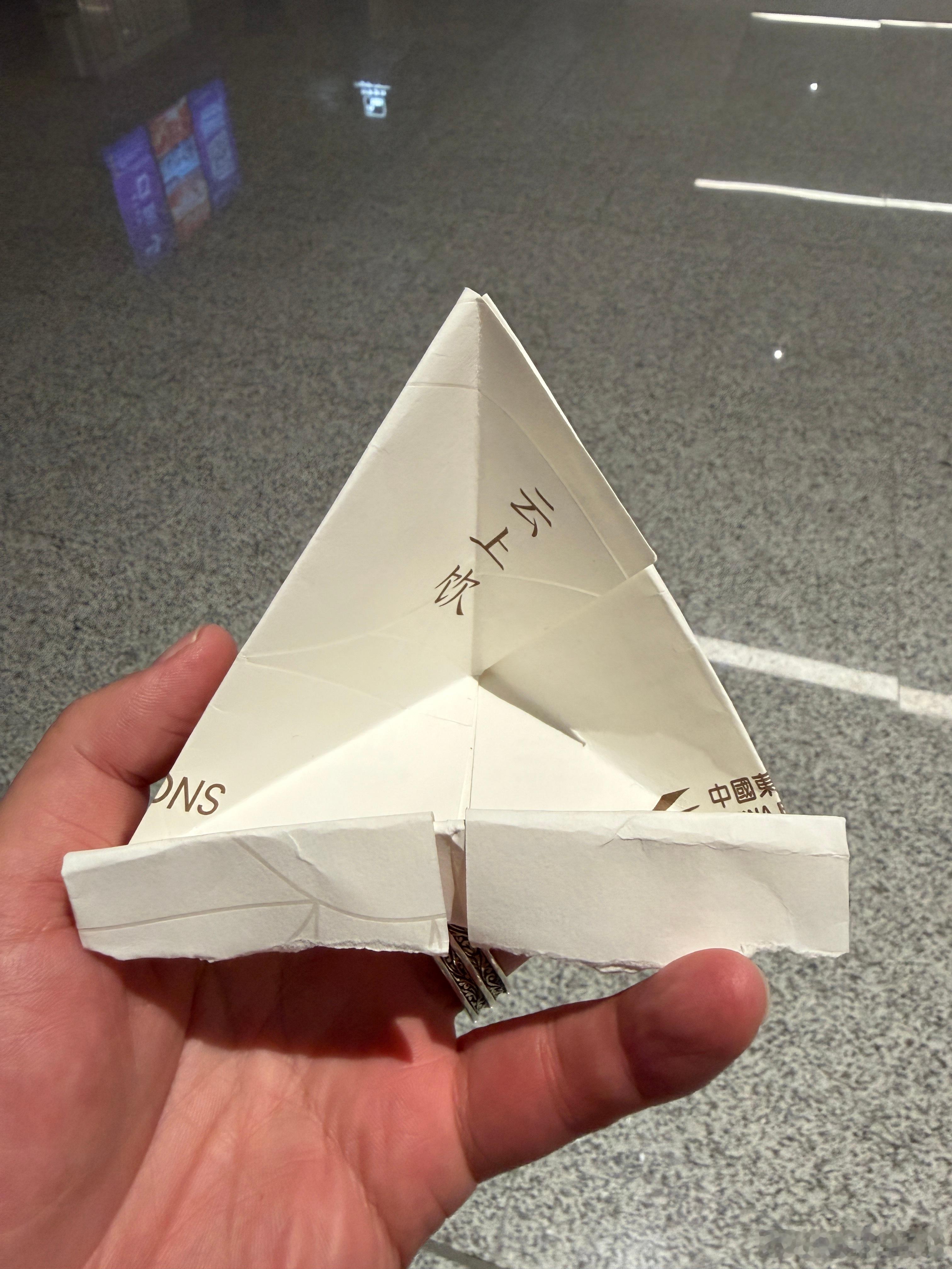 几天前乘坐东航航班~自己用垃圾袋叠了个手机支架~行程过半~机组小哥递给我一个更坚