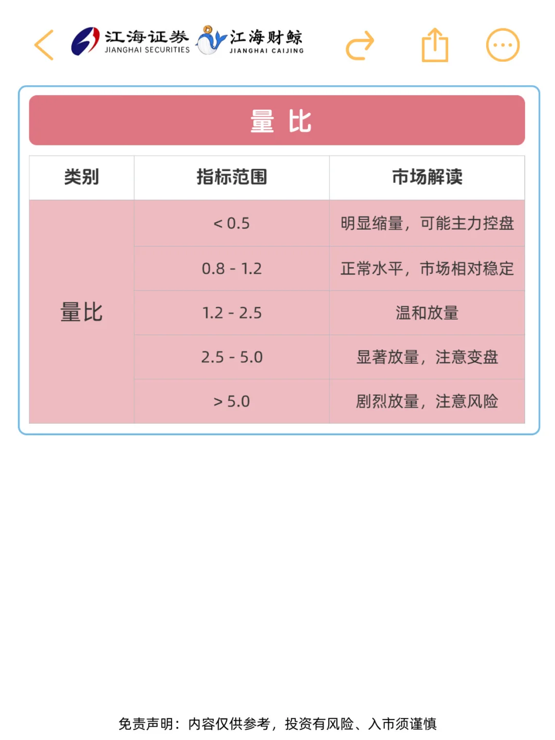 📈 股市三大指标干货来啦! 换手率、市盈率、量比——读懂它们,轻松把握市场脉搏 1️⃣【换手率】透露资金热度: <2%?冷清观望;>25%?疯狂离场信号! 2️⃣【市盈率】衡量估值高低: <20可能被低估,>50警惕泡沫风险! 3️⃣【量比】看穿资金动向: <0.5主力控盘?>5.0剧烈放量需谨慎! 三指标联动,帮你避开陷阱、捕捉机会! 💡 投资新手也能快速上手,收藏备用~ (注:数据仅供参考,市场有风险,决策需理性哦!)
