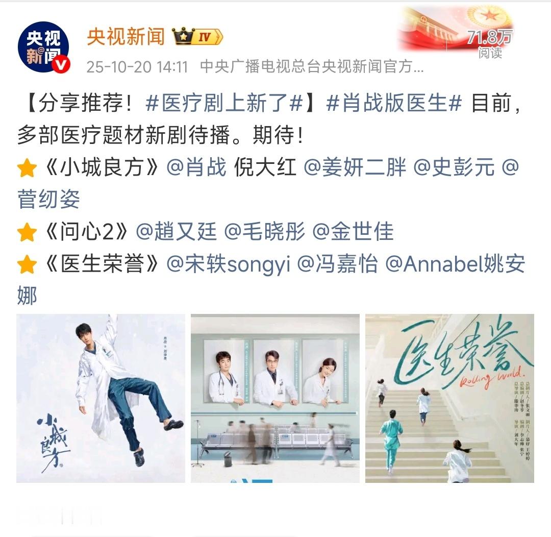 不愧是肖战,小城良方被央视新闻推荐了[赞]