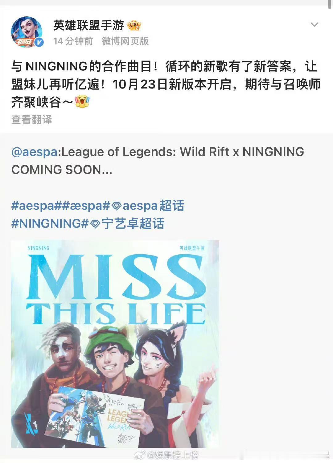 宁艺卓英雄联盟合作曲预告 宁宁合作曲预告来啦~太期待了!