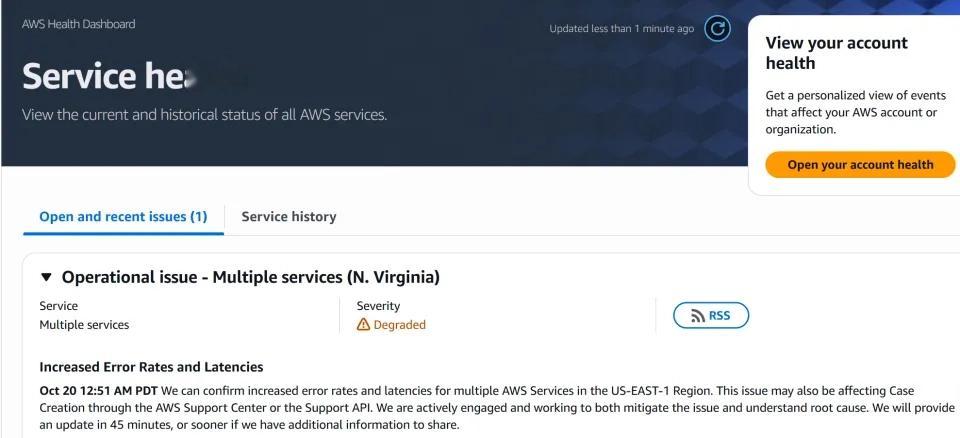亚马逊AWS云服务突发故障,大量互联网应用在美国地区的服务几乎在同一时间集体掉线